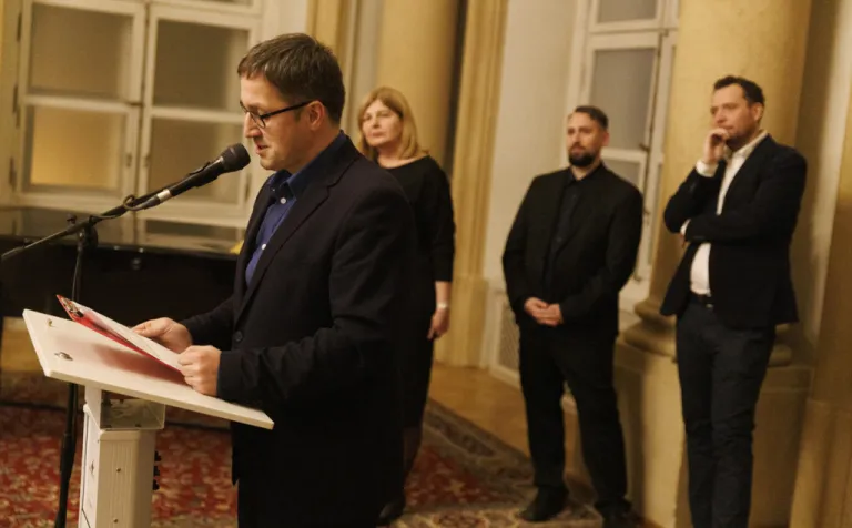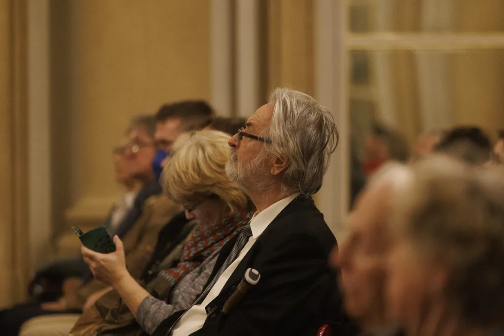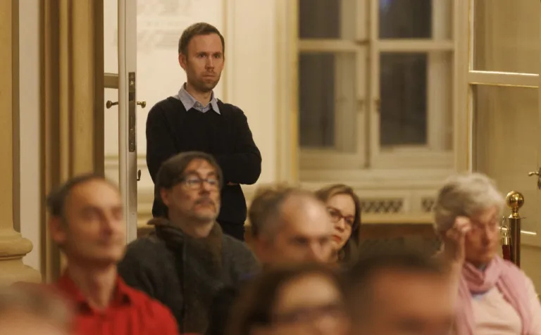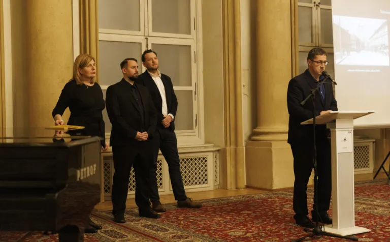 A közel száz néző jelenlétében tartott estet vezető Korpás Árpád, polgári társulásunk alelnöke elsőként Ján Vyhnánek alelnök „Villamossal Pozsonyban” című előadását konferálta fel.