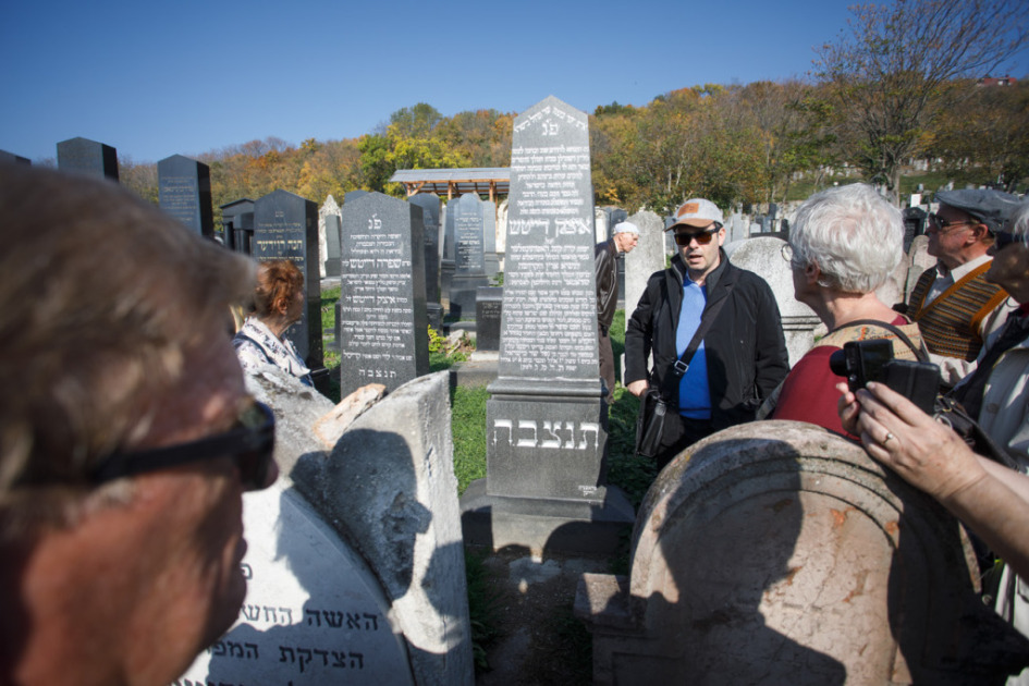 Október 27-én, vasárnap találkoztunk a Žižka utcán (Žižkova), az ortodox zsidó temető kapuja előtt. Vezetőnk dr. Maroš Borský, a pozsonyi Zsidó Közösségi Múzeum igazgatója volt, aki sokat tesz a zsidó emlékek népszerűsítéséért, fenntartásáért és megőrzéséért.