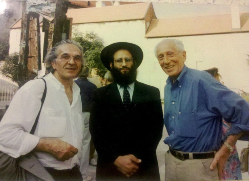 Max Stern (jobbról az első), Baruch Myers pozsonyi rabbi (középen) társaságában 1997-ben a Hal téri (Rybné námestie) holokauszt-emlékmű leleplezésén, Katarína Lesná archívumából.