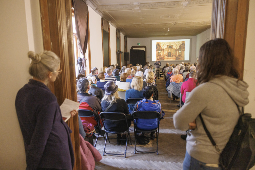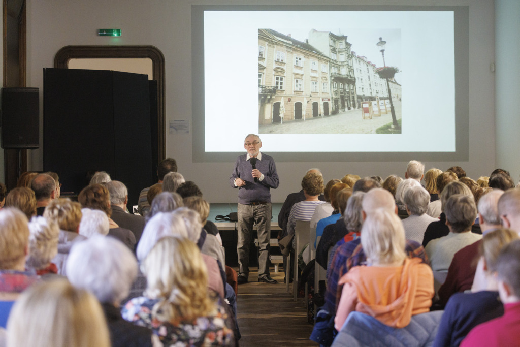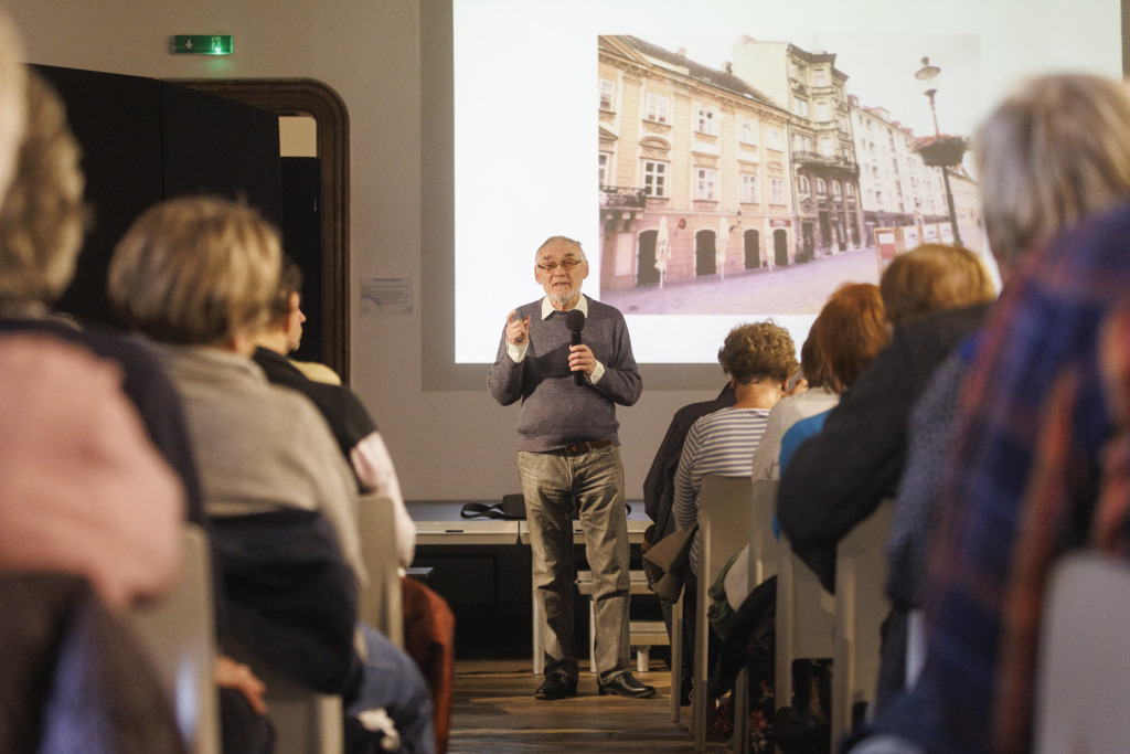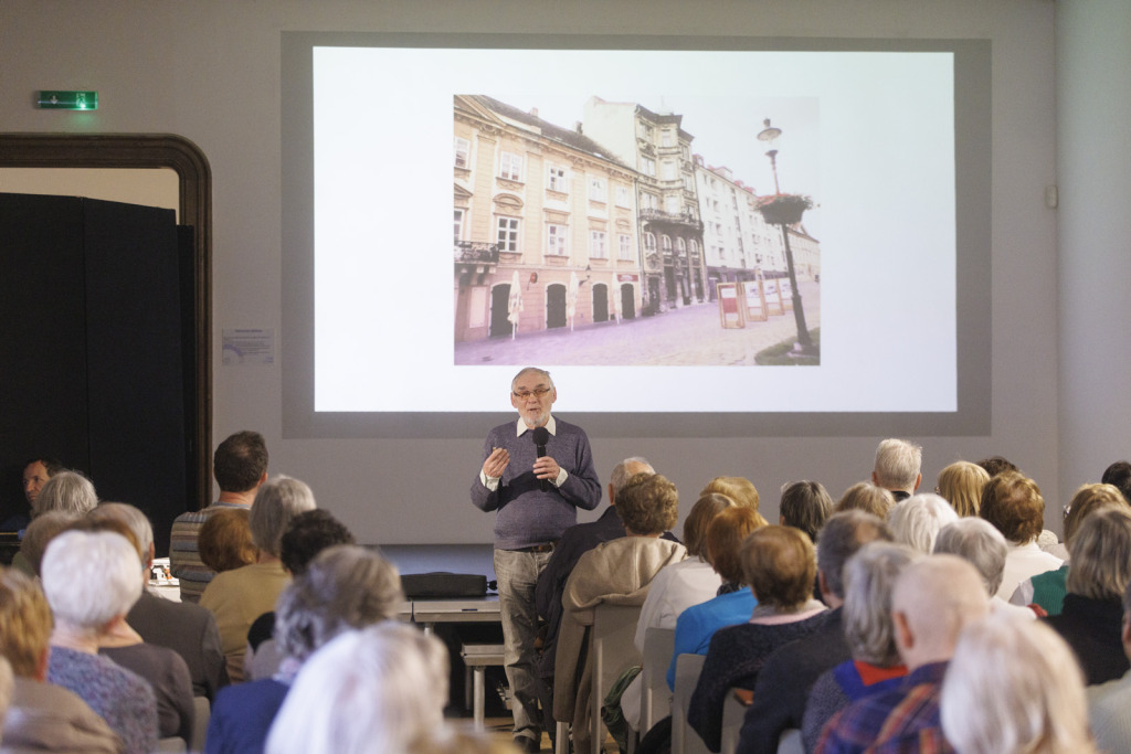 A résztvevők kivételesen magas száma bizonyította, hogy a pozsonyi polgárok mindmáig a szívükön viselik a patika sorsát. Előadónk a főváros történelmének neves ismerője, Štefan Holčik történész volt, aki már az est elején bevallotta, hogy különleges kapcsolat fűzi a gyógyszertárhoz. A rá jellemző energikus, olykor humoros stílusban avatott be minket a patika titkaiba, közelebb hozva hozzánk annak múltját, és már-már hihetetlennek tűnő részleteket árult el a gyógyszertár egykori berendezéséről. Egy ilyen lebilincselő előadás alatt csak úgy repül az idő – észre sem vettük, hogy eltelt 90 perc. Vonakodva ugyan, de el kellett búcsúznunk, előtte azonban még gratuláltunk Holčíknak a kerek jubileumához. Köszönjük minden érdeklődőnek a részvételt!
