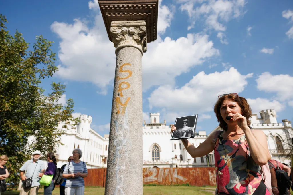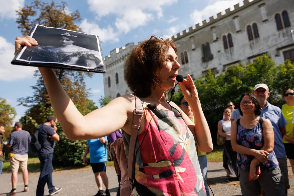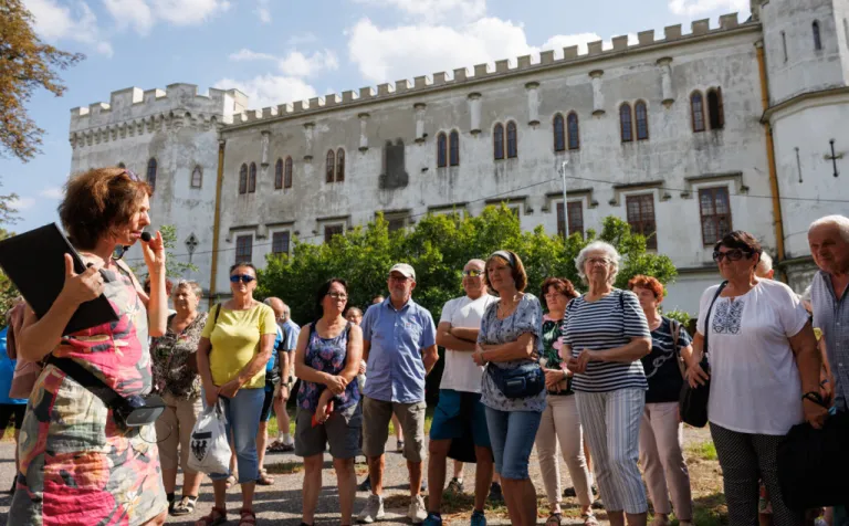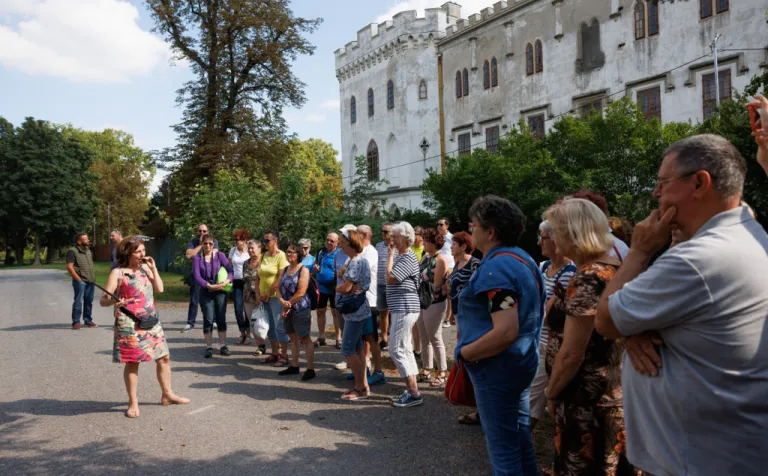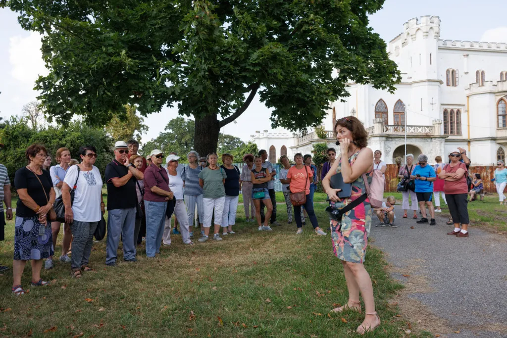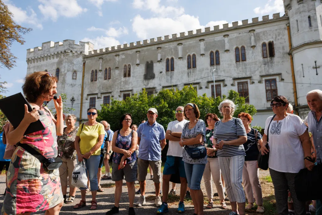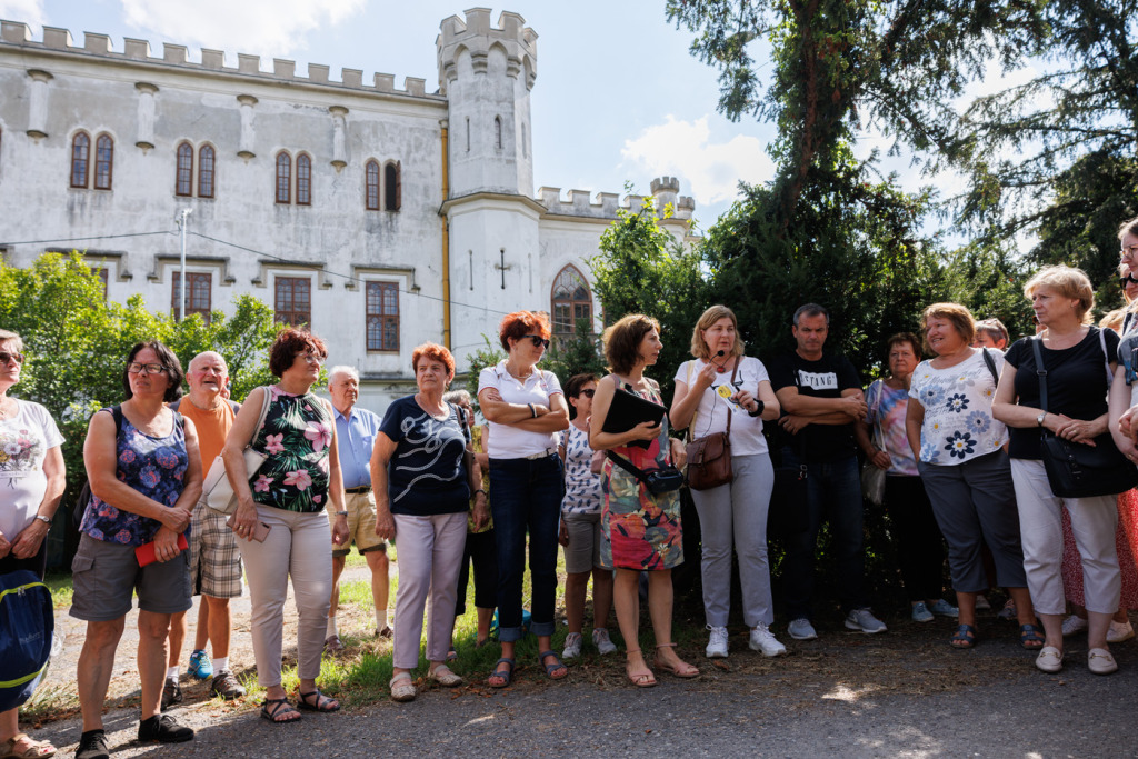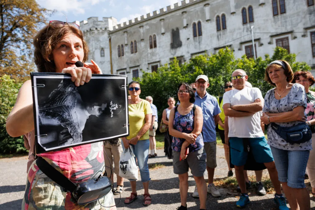 Az idegenvezető, Reiter Éva az egykoron a kastély lovardájaként szolgáló, mára a Sľuk néptáncegyüttesnek helyet adó épület mellett várta a kis-nagy csapatot. Oroszvár és híres kúriájának története mellett elsősorban annak bemutatására fektette a hangsúlyt, kik voltak a lakói, és milyen kapcsolati szálak fűzték őket össze – hiszen a kastély falai között több viharos szerelmi viszony és boldog házasság is kibontakozott.