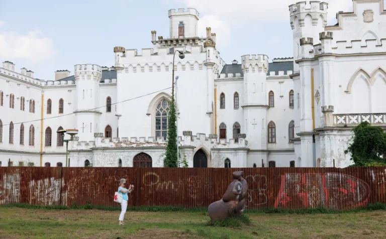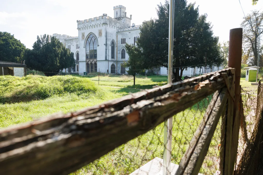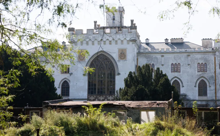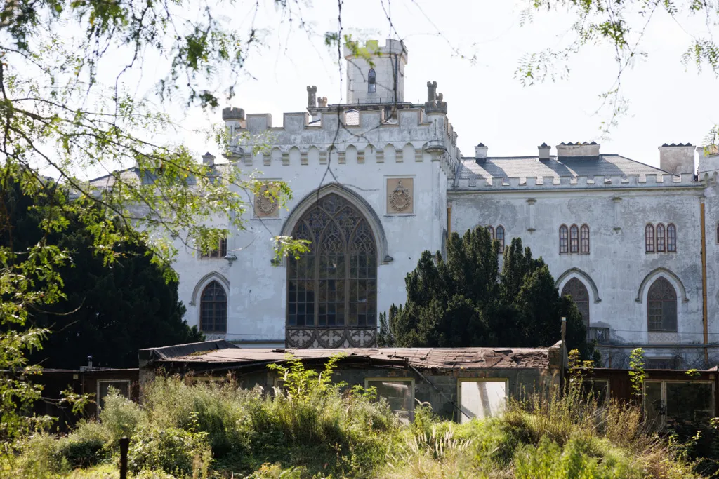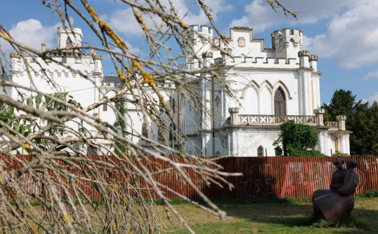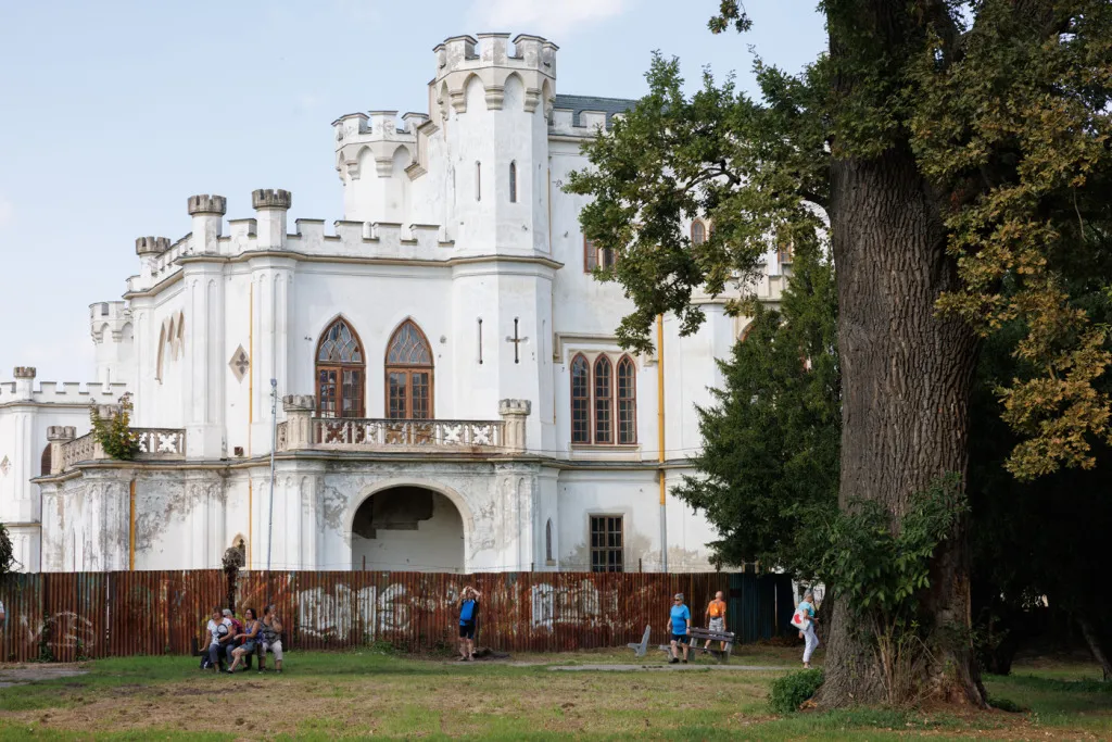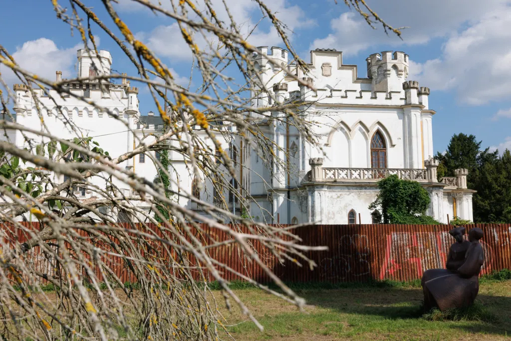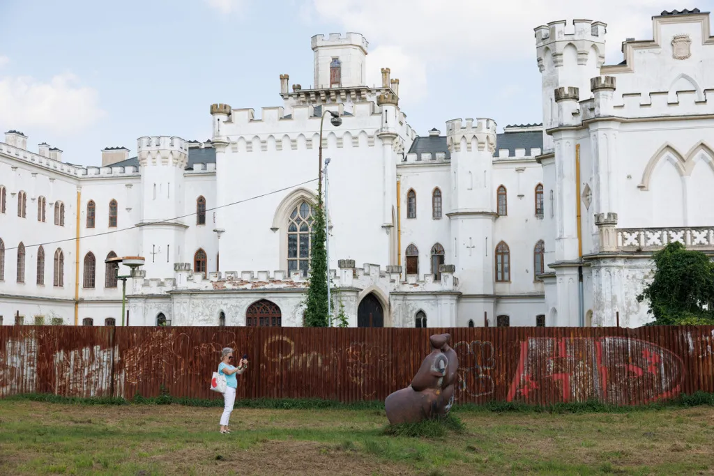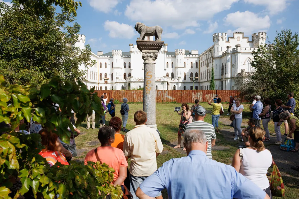 A magyar Windsorként is ismert, neogótikus stílusú épület homlokzatánál megállva idegenvezetőnk elsőként Széchenyi Zichyné Seilern Crescence iránti, beteljesült szerelméről mesélt az érdeklődőknek. Majd a kevésbé boldog véget ért, Zichy Ferraris Manó és angol felesége, Lady Charlotte házassága került terítékre, melyet az asszony gróf Andrássy Manóval való botrányos viszonya tett tragikussá. Tovább haladva a kastély déli szárnya felé, megtekintve a hozzá tartozó egykori parkot is, az épület következő tulajdonosáról, Hugo Henckel von Donnersmarkról esett szó, aki szintén szerelemből vásárolta meg a birtokot feleségének, Laura Philippina Augustának. A házaspár lótenyésztéssel is foglalkozott, Európa-szerte híressé téve ezzel Oroszvárt, és olyan neves vendégeket fogadtak a kastélyban, mint Sissi vagy Ferenc Ferdinánd.
