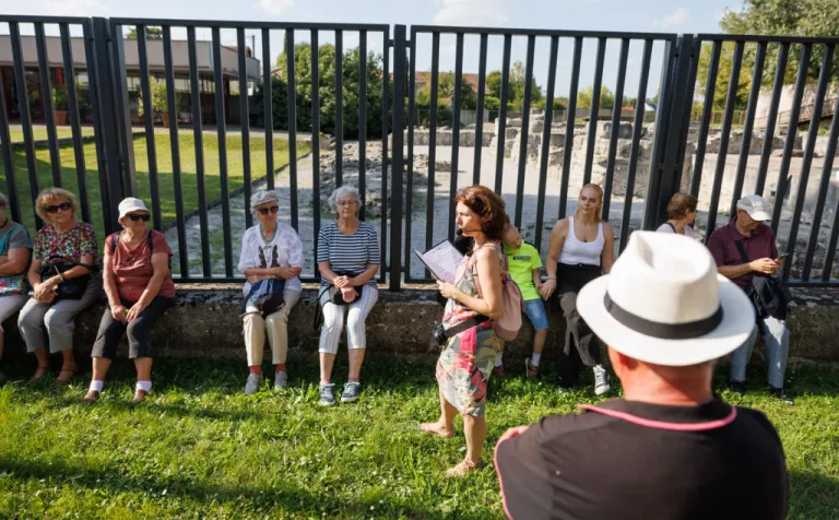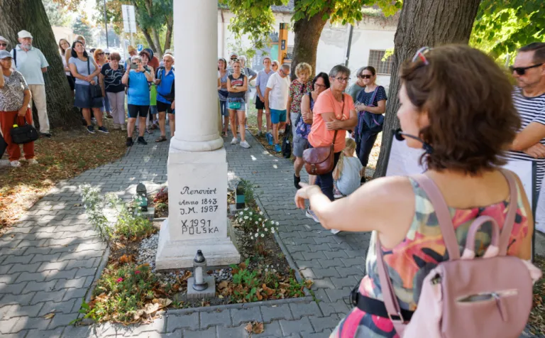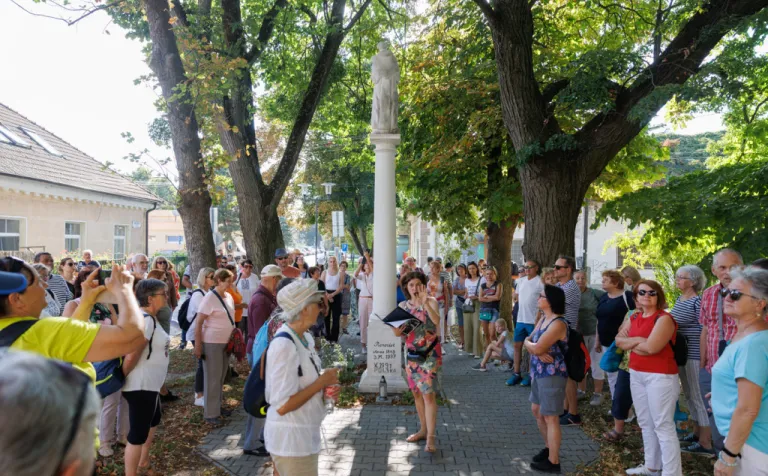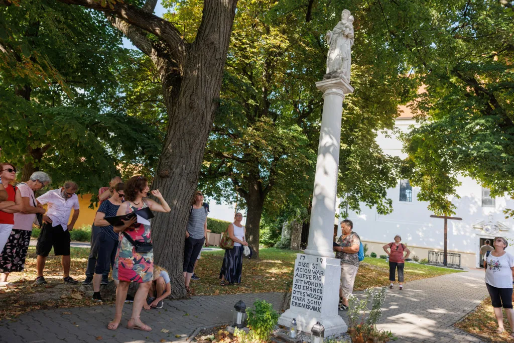 A séta utolsó állomásainak egyike két szakrális emlék, a klasszicista stílusú evangélikus templom, valamint a Mária Magdolna-templom és az előtte álló, barokk pestisoszlop volt. Zárásként pedig idegenvezetőnk Oroszvár sokkal régebbi, az antik korba visszavezető eredetét is megismertette a résztvevőkkel, elkalauzolva őket a valamikori Római Birodalom egyik itteni katonai táborhoz, a Geruláta romjaihoz.
