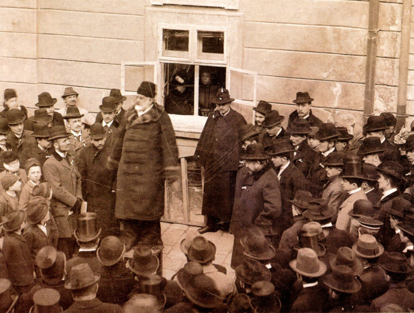 Petőfi Sándor emléktáblájának avatása 1900-ben. Az ünnepi beszédet Thaly Kálmán mondta.
