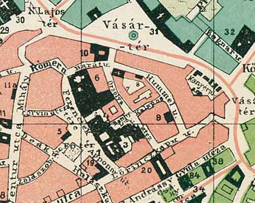 A SzNF teret és a Prímáspalota teret összekötő Kalapos utca mai alakját a vásárcsarnok felépítésével nyerte el. Előtte gyakorlatilag egy szűk, kacskaringós sikátor volt. A régi képeslapokon hiába keressük ezt az utcát, az akkori felfogás szerint ugyanis nem az ilyen típusú helyek voltak a város ékességei.