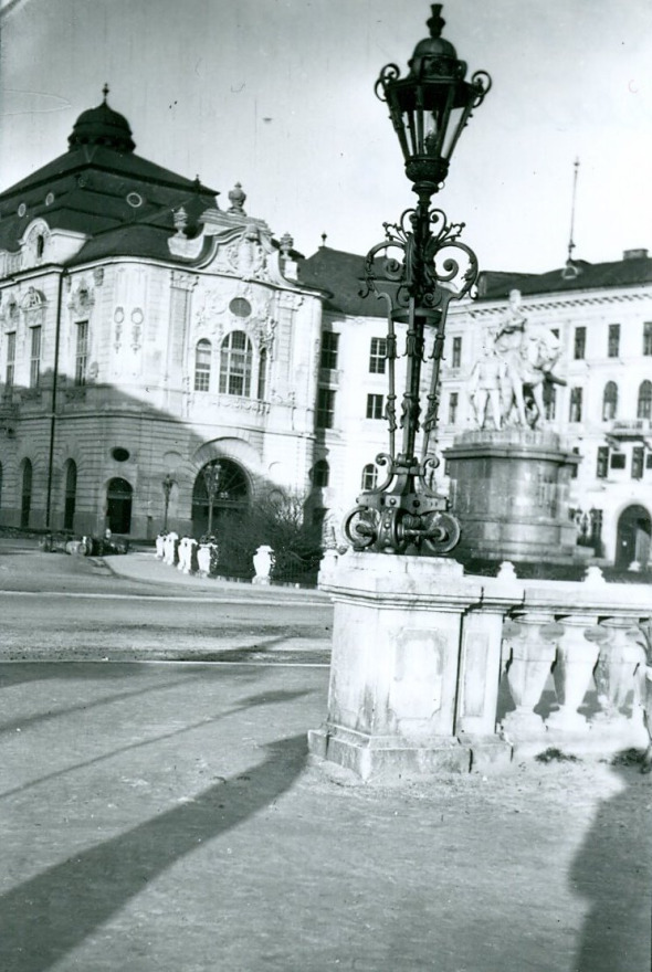 A pozsonyi Vigadó a Mária Terézia- szoborcsoporttal. Forrás: SzNM – Kárpáti Német Kultúra Múzeuma