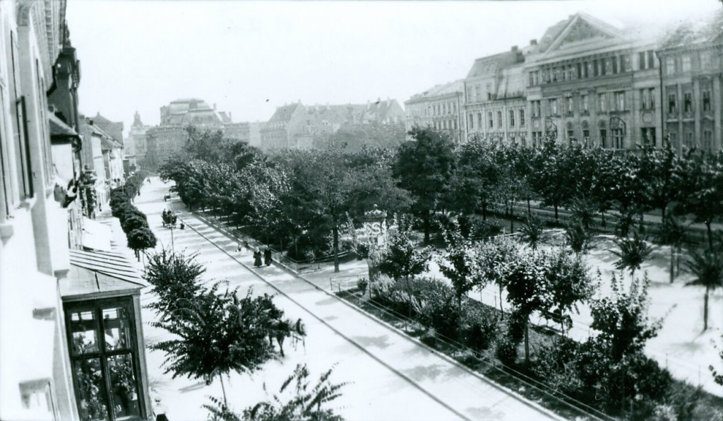 A Kossuth Lajos tér (Sétatér) közepe. Forrás: SzNM – Kárpáti Német Kultúra Múzeuma
