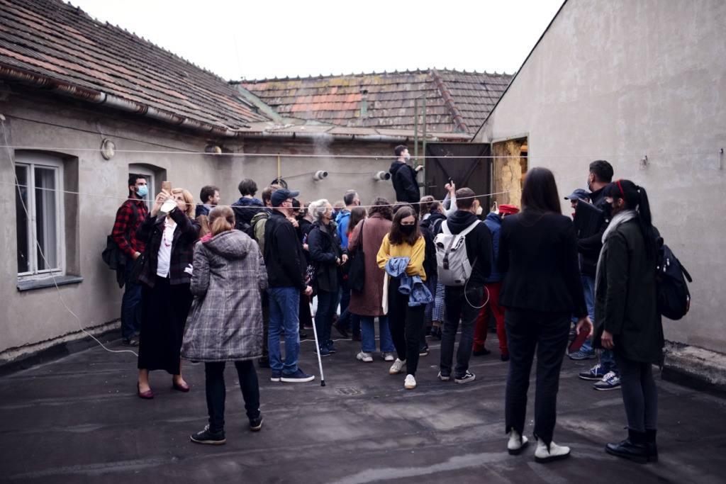 Jančula úr fokozatosan mindenkit végigvezetett az épületen, az udvartól kezdve a padlásig. “Az épület födémszerkezetét egy egyedülálló vasbeton váz képezi. - mesélte, majd a továbbiakban hozzátette - Az YMCA épületében játszottak először Szlovákia területén rendszeresen röplabda, kosárlabda, asztalitenisz mérkőzéseket. De az épületben működött egy viszonylag magas színvonalú önkiszolgáló étterem is, amihez fogható azidáig Szlovákiában nem létezett.”