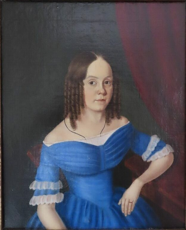 Kraiss Julianna a második házassága előtt. A képet valószínűleg Brandl Antal festette, kiemelve a hölgy eljegyzési gyűrűjét. (Magántulajdonban)
