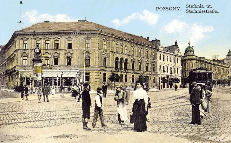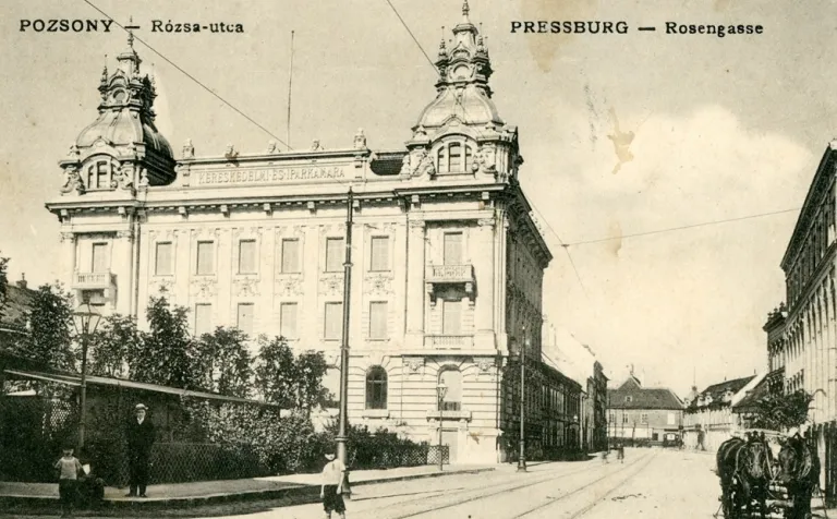 Az utcát, ahol ez a régi ház áll, nevezték már Récsei útnak, Ratzerdorferstrassénak, volt Februári győzelem utcája (Februárového víťazstva) is, ma pedig Récsei utca (Račianska). A 41. szám alatti bérház önmagában állt, nem messze a csehszlovák legionáriusok szövetkezeti házaitól, az ún. legionáriusházaktól. Egy időben épültek, a múlt század 30-as éveinek elején. A városból kifelé, Récse (Rača) irányában már csak kertek voltak, szőlők és egy kis kenderfeldolgozó üzem. A mai Hegesztési Kutatóintézet és Igazságügyi Minisztérium helyén pedig burgonyavermek. Utánuk a motoros malom következett a ma is álló silóval, majd a messze illatozó Stollwerck csokoládégyár. Aztán sokáig semmi, majd a Dynamit Nobel vegyi üzem. A villamosvonal azért épült, hogy a dinamitgyár dolgozói időben beérjenek a munkahelyükre. A gyár Pozsony szélén állt. A kezdetben egyvágányú vonal több módosítás után immár 100 éve üzemel. Végállomása a gyár előtti Fehér kereszt emlékmű közelében, a Gesztenyeligetnél volt. Onnan indultak a buszok Récsére. Akkoriban még félnapos program volt egy récsei látogatás. A házunkkal szemben egy vasáru-kereskedés működött, az egykori FOŽ, amelyhez egy bérház is tartozott. Az FOŽ mögött terpeszkedő Pozsony-Fiókpályaudvar (Filiálka) az említett cégek fontos áruátrakodó állomása volt, ahonnan külön vágány ágazott le a telephelyükre. A pályaudvartól nem messze található Siemens művekbe is vezetett egy különleges leágazás: az íves vágánynak csupán a belső oldalán volt sín, a kocsik külső kerekei egy acélbarázdában siklottak. A város irányában a Récsei vám (Račianske mýto), a Virágvölgy (Blumentál), majd a centrum következett.