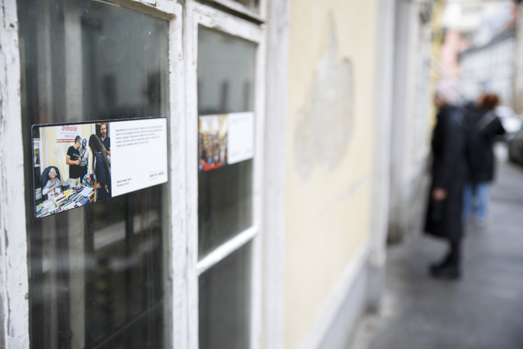 A kiállítás nyomvonalán jócskán akad felfedezni való, hiszen a kerítésekre feszített molinókon kívül kirakatok és ablakok is rejtenek képeket, szövegeket – egy-egy adatot, történetet vagy emlékdarabkát a Jó piac elmúlt tíz évéből, az általa közvetített értékekről, tanulságokról, üzenetekről. 2011. szeptember 15-én kezdődött, húsz sátorral – olvasható az egyik molinón. Aztán egyre többen kapcsolódtak be az utcán élő emberek, vagy az itt működő intézmények közül is. Az ő ablakaikban most, a kiállítás idején csillagkoszorú világít.