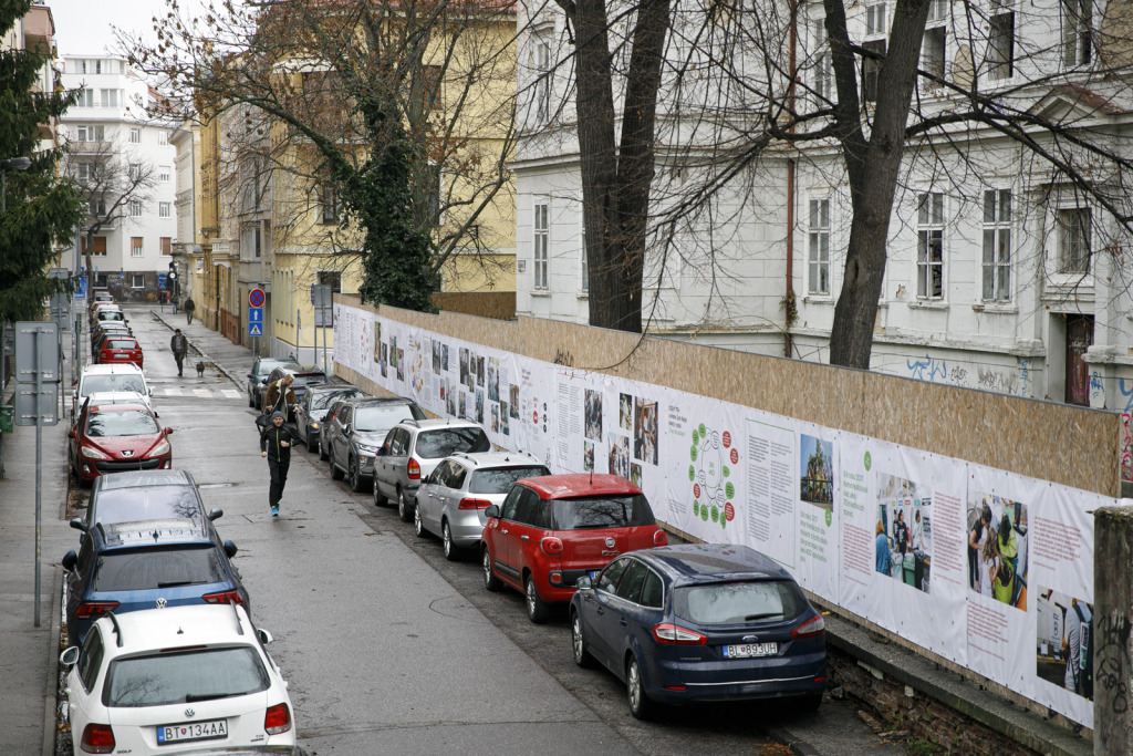 Egy kültéri kiállításra nyilván mindenki igyekszik fényes nappal odaérni, főleg ilyenkor télen, amikor fél ötkor már sötétedik. Ennek a kiállításnak viszont van egy nagy előnye, hogy nappal és este is tartogat felfedezésre váró részleteket. Érdemes megállni az Apácapálya és a Štetinova utca sarkán is, mert két ház tűzfalán is láthatunk kivetítve filmfelvételeket, amelyek az elmúlt tíz év Jó piacain készültek. Rendszeresen találkozhattak itt a Pozsonyi Kifli Polgári Társulás standjával és kiadványaival is. Örömünkre szolgál, hogy részesei lehettünk, lehetünk ennek a történetnek, és már mi is nagyon várjuk, hogy ismét piacozhassunk egy jót!