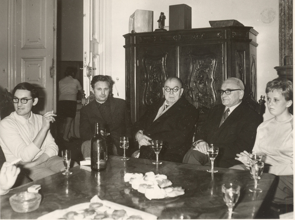 Faust Ovidius (középen) a Városi Múzeumban a visszatérése után, 1971. Forrás: Faust Ovidius hagyatéka és a Pozsonyi Városi Múzeum fényképarchívuma