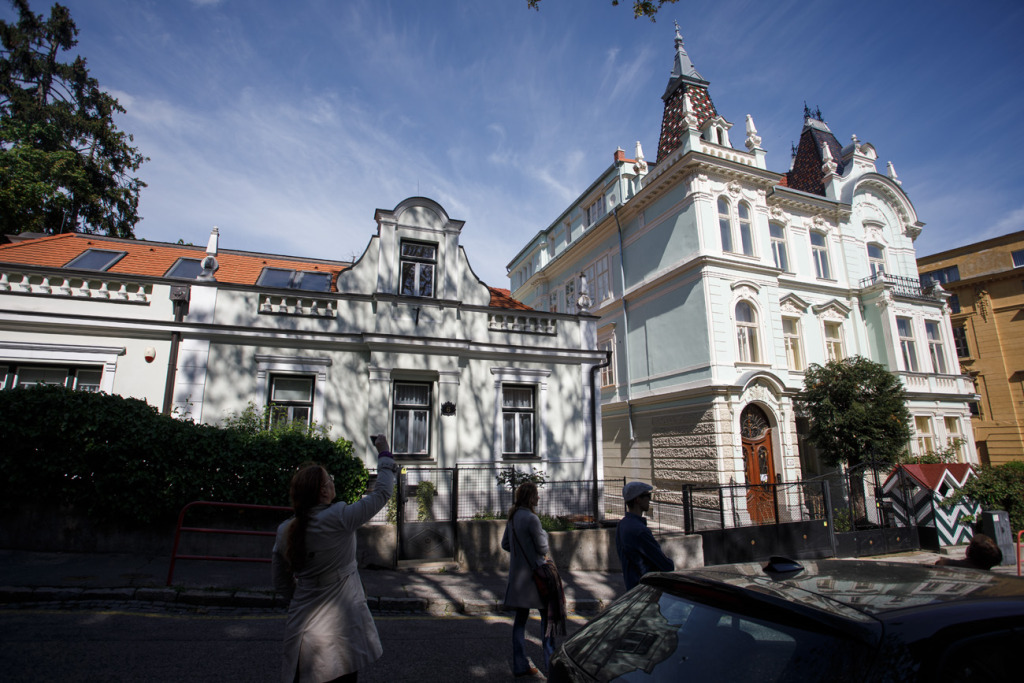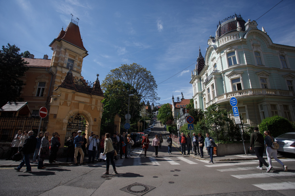 Az erős széllel sikerrel dacoló mintegy hatvan fős csoport az egykor Béke térről indult, majd a (mai nevükön) Gunduličova – Moyzesova – Fraňa Kráľa – Lermontovova – Vlčkova utcák érintésével a Kuzmányho utca villáit látogatta sorra. Ezek épültek mind közül a legkorábban, 1860-tól kezdve.