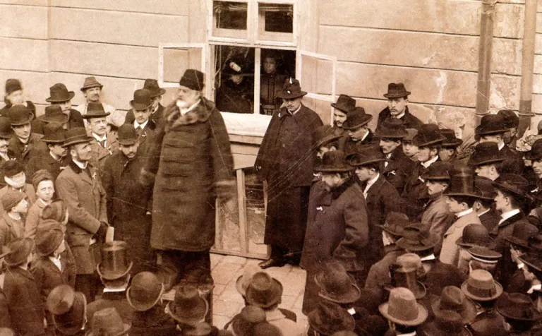 Élete utolsó szakaszában Heinrich az Arany szarvas vendéglőt (később fogadó) üzemeltette, amely előtt az üvegezett teraszok láthatók. Forrás: J. Cmorej