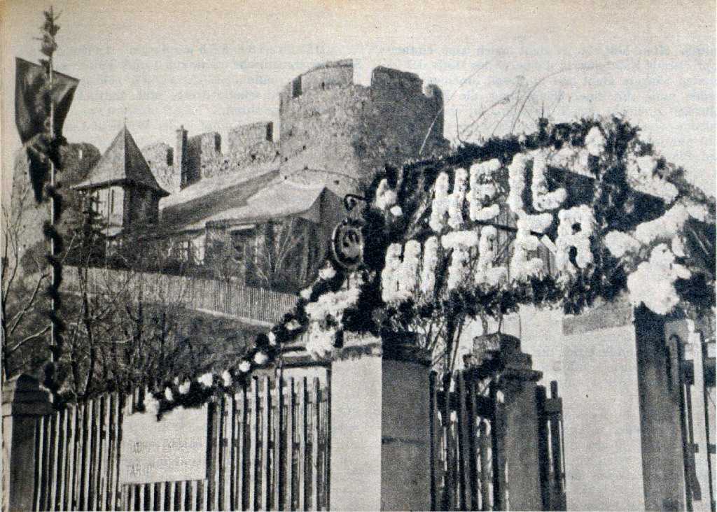 „Heil Hitler” felirattal ékesített virágkapu a dévényi vár keleti kapuja alatt (Forrás: a szerző archívuma)