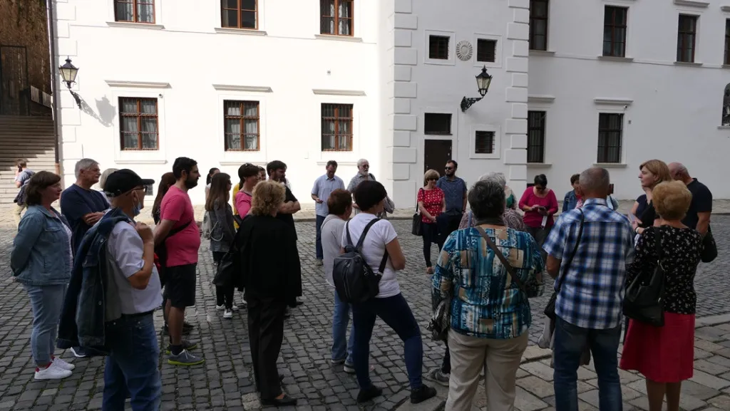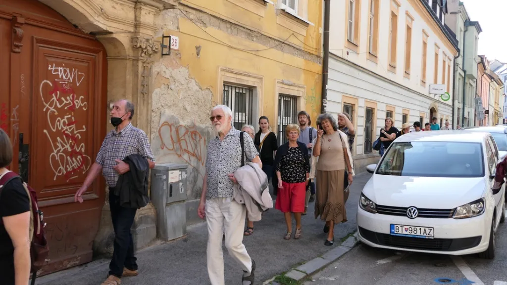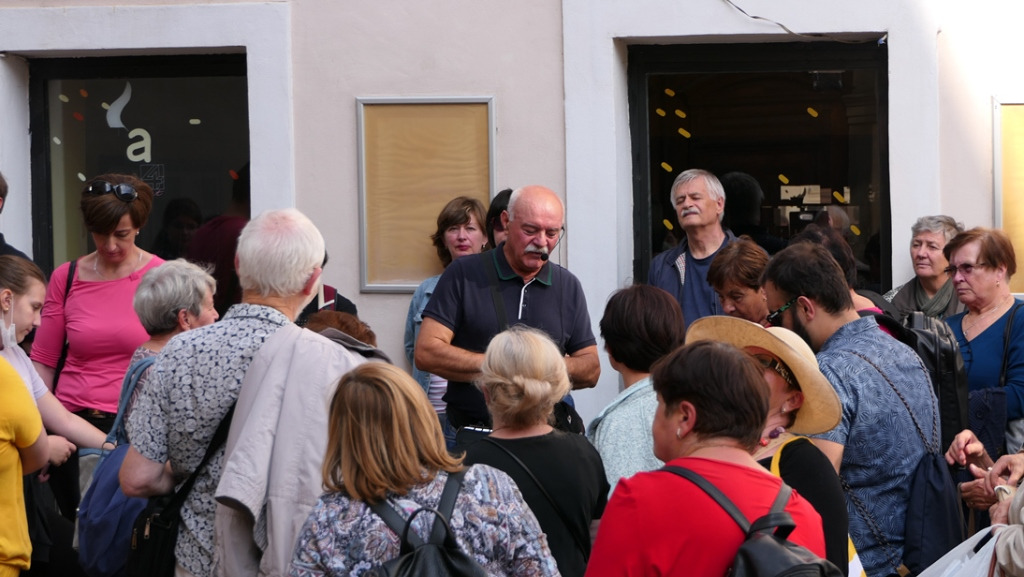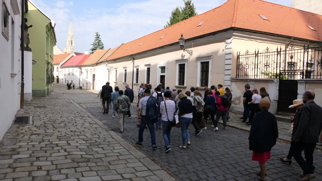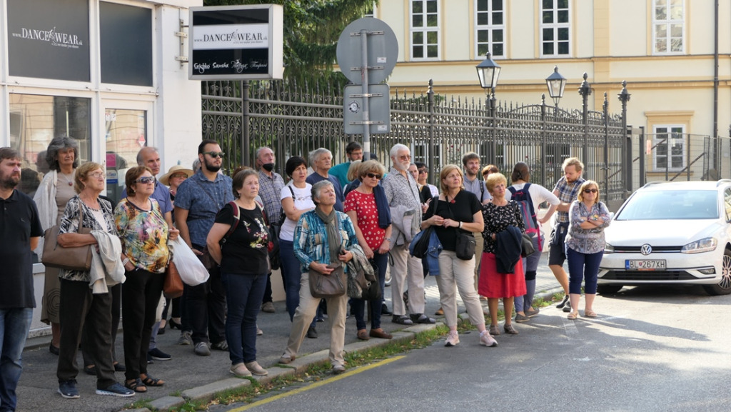 A sétánk ugyan időben messziről indult, amikor a dóm előtt az első összefüggő magyar nyelvemlékről, a 18. században itt felfedezett, de a 12. században másutt keletkezett Halotti beszédről volt szó, de mintegy két óra alatt sikerült legalább vázlatosan számba venni azokat a személyiségeket, akik a 20. század első harmadával bezárólag a pozsonyi belváros különböző pontjaihoz kötődtek hosszabb-rövidebb ideig tartó itt-tartózkodásuk okán. Volt köztük olyan, aki csak éppen átutazott, illetve táncolt egyet a várban Rudolf király koronázási ünnepségén, mint Balassi Balint, vagy talán nem is járt itt, de egy ide kötődő történelmi eseményről írt, mint a Búvár Kundot megéneklő Vörösmarty Mihály, vagy az országgyűlésen megjelenő mágnások közt mecénásokat kereső Csokonai Vitéz Mihály, vagy az országgyűlésen részt vevő, egyébként tanmeséket és szépprózát is író Fáy András, valamint a Himnuszunk szerzője, Kölcsey Ferenc. Petőfi Sándor többször is megfordult a városban, leghosszab ideig tartó itt-tartozkodására emléktábla utal, és később emlékművet is állítottak neki. Emléktábla jelöli azt a házat is, amelyben megfordult Kisfaludy Károly, akinek testvérbátyja, a lírai költő Sándor Pozsonyban tanult a királyi jogakadémián, ahogy az irodalomkritikus, lapszerkesztő Bajza József is. A sor azonban tovább folytatható Az obsitos című elbeszélő költeményében a nagyot mondó Háry János alakját megteremtő Garay Jánossal, aki több mint egy évig a Pozsonyban megjelenő Hirnök című lapnál dolgozott. A katolikus főgimnáziumban tanult a szótáríró és költő Czuczor Gergely, később pedig Reviczky Gyula, a modern magyar irodalom korai előfutára.