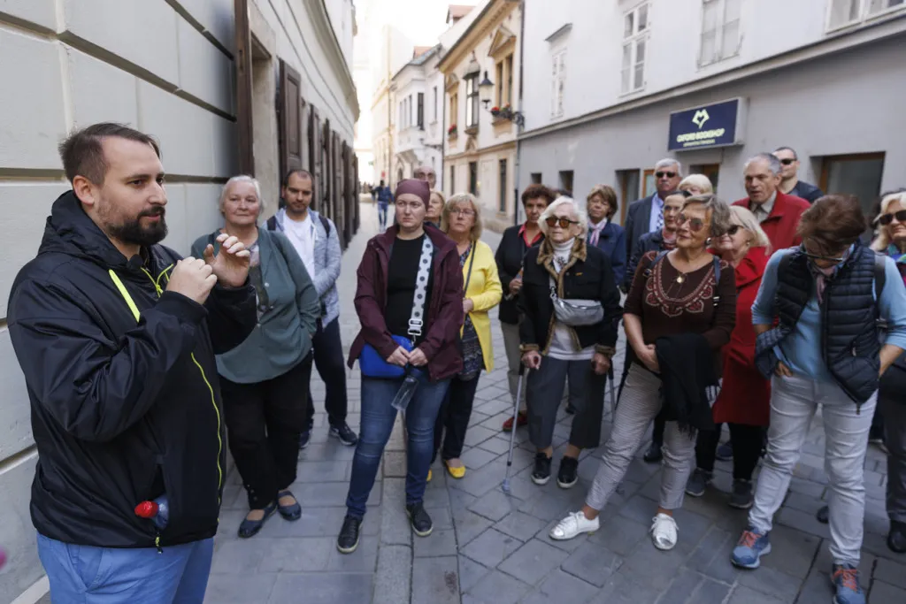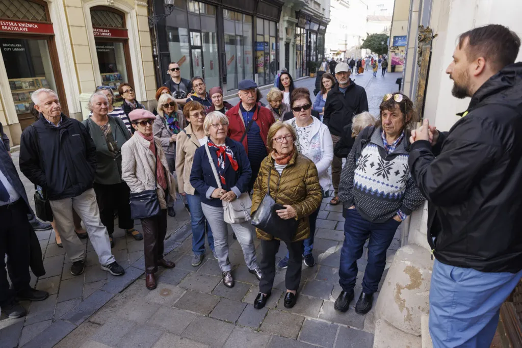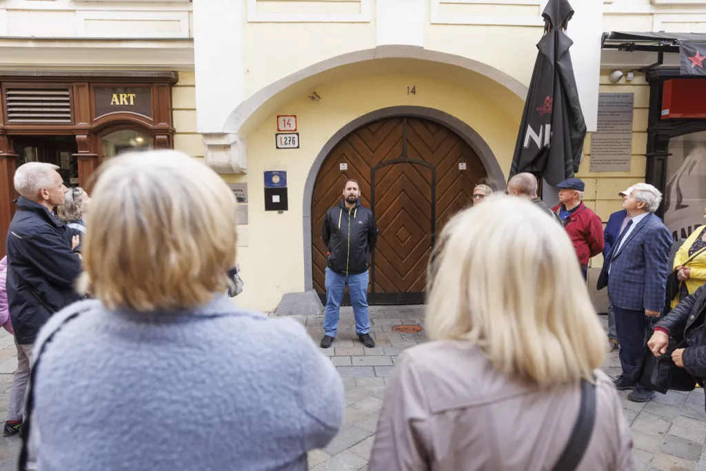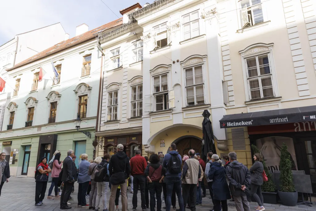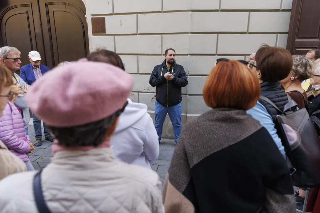 Ismert és ismeretlen szülőházak címmel tartott tematikus városnéző sétát 2022. október 9-én Ján Vyhnánek, a Pozsonyi Kifli Polgári Társulás alelnöke.