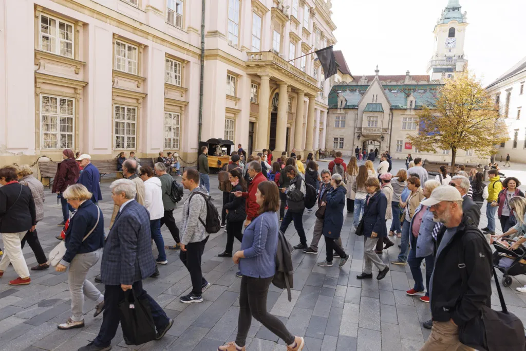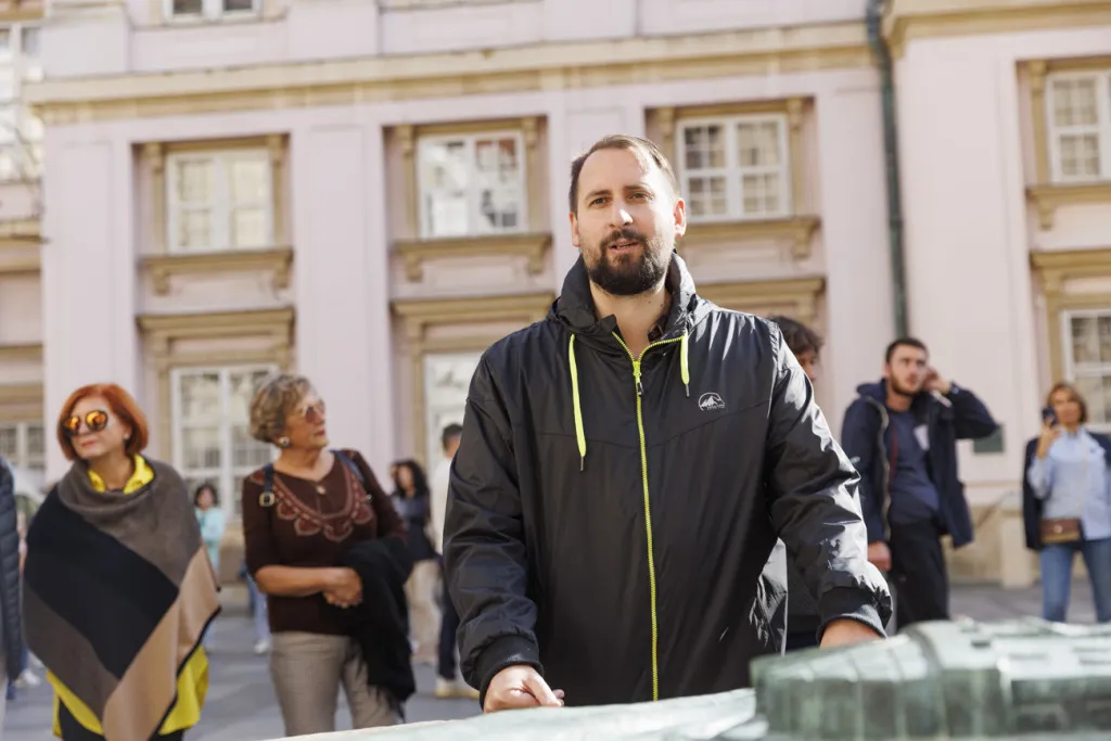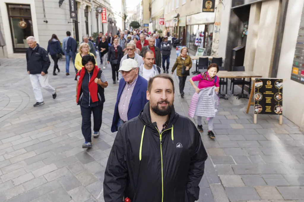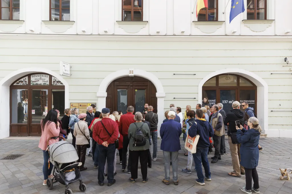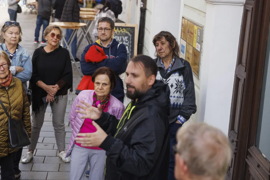 Ismert és ismeretlen szülőházak címmel tartott tematikus városnéző sétát 2022. október 9-én Ján Vyhnánek, a Pozsonyi Kifli Polgári Társulás alelnöke.