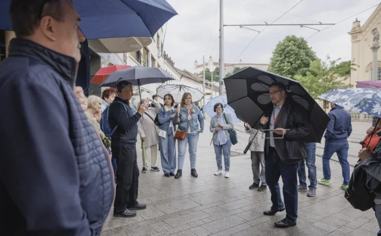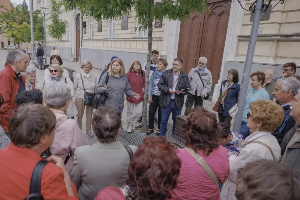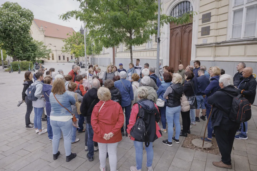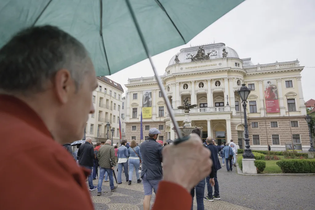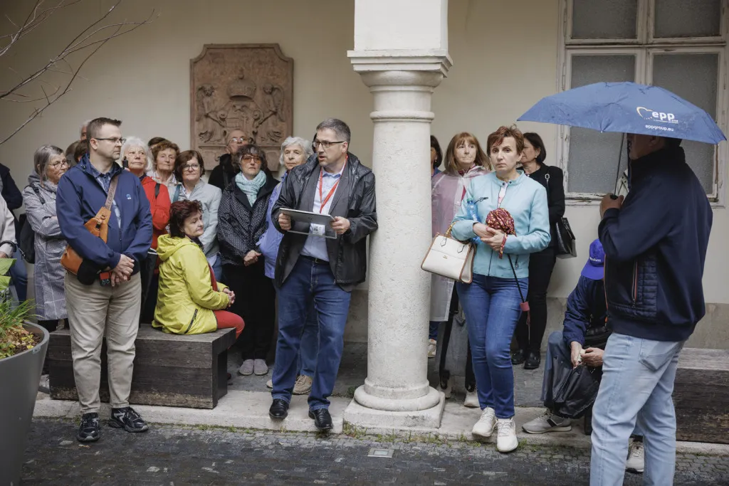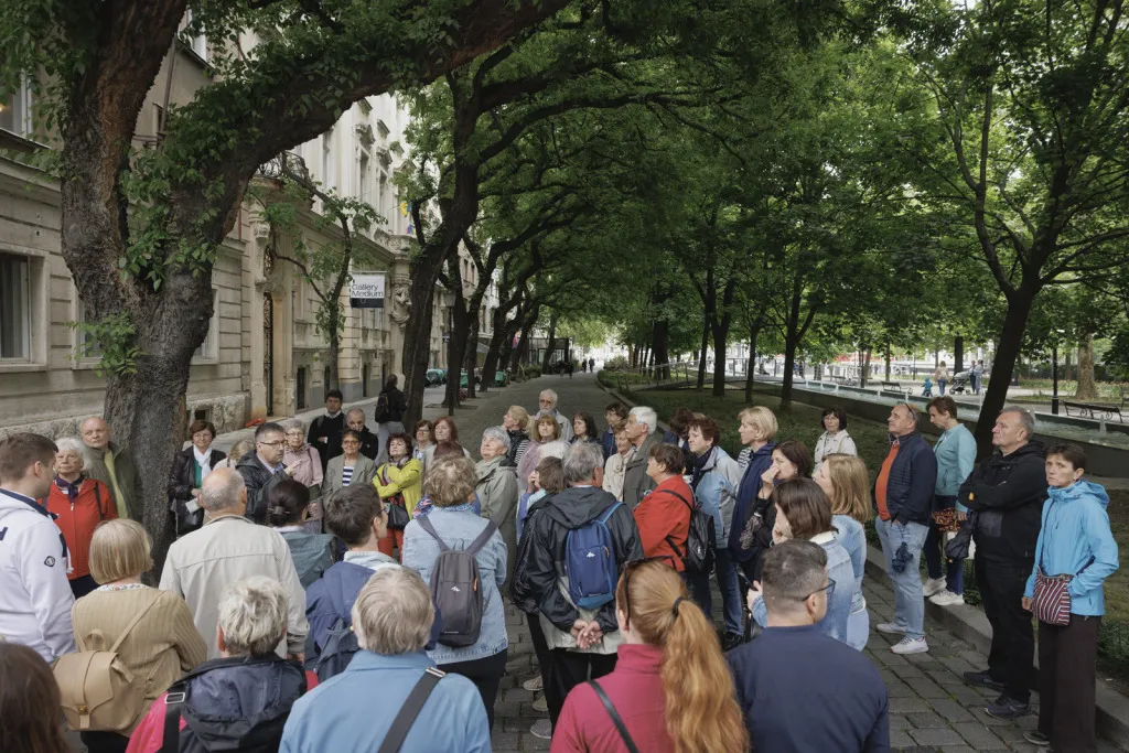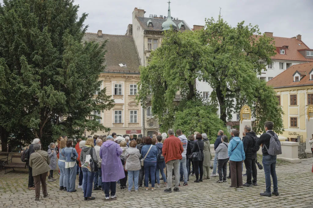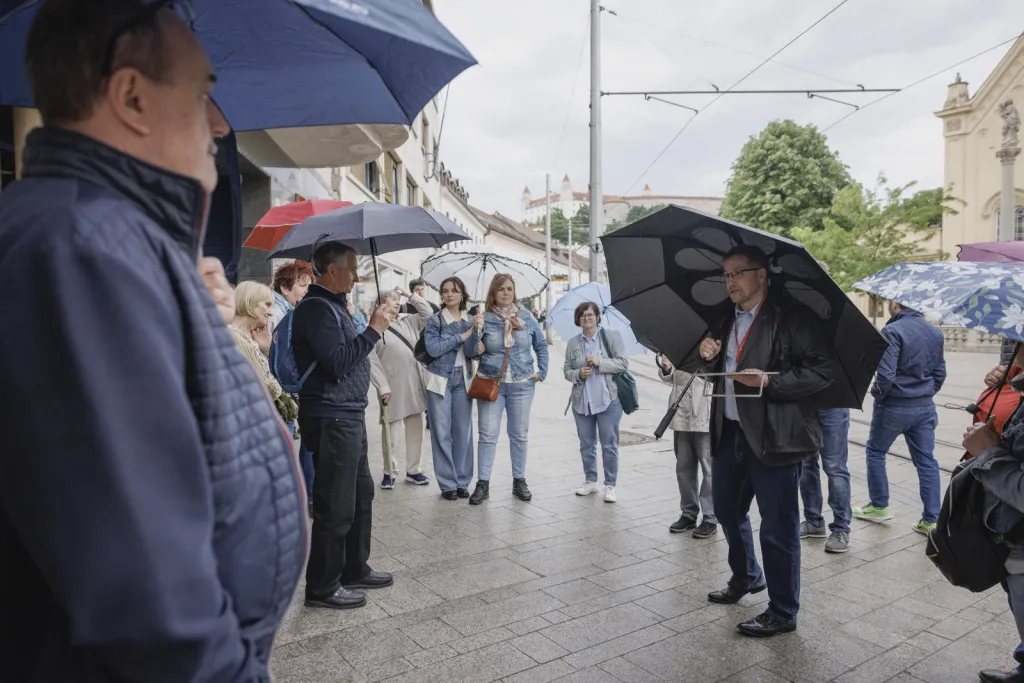 Zord idő és szürke esőfelhők kísérték a május 4-én megtartott tematikus sétát. A szüntelenül szemerkélő eső sem tudta azonban kedvét szegni a közel 65 résztvevőnek, akik a Hurban téren, az egykori Vármegyeház előtt várakoztak. Innen indította meg a sétát Korpás Árpád, Jókai Mór pozsonyi tartózkodásainak nyomát követve.