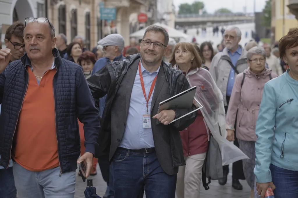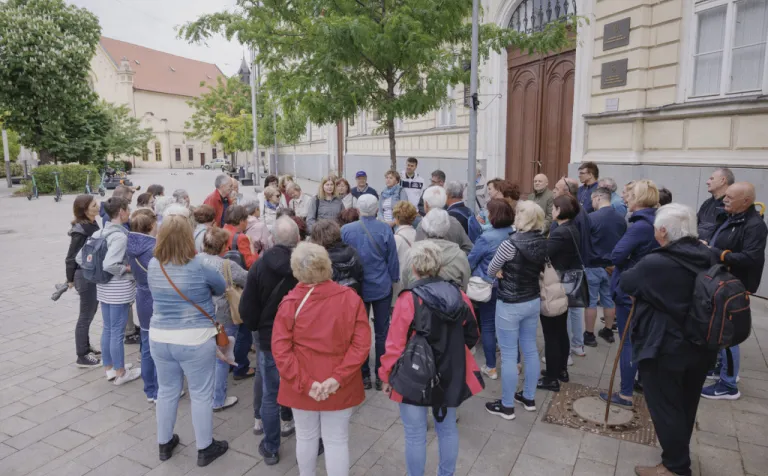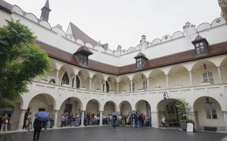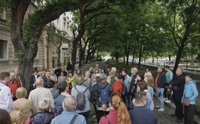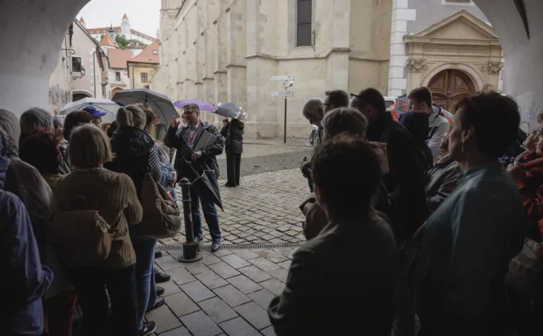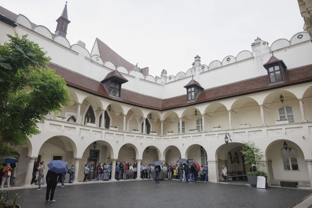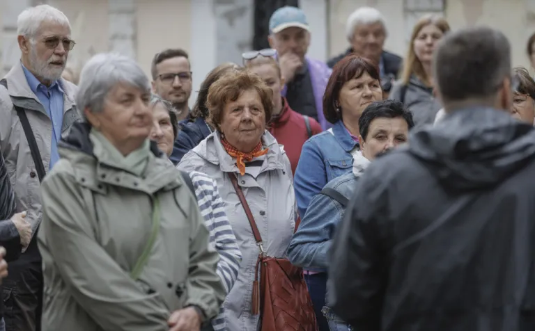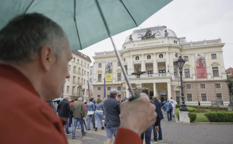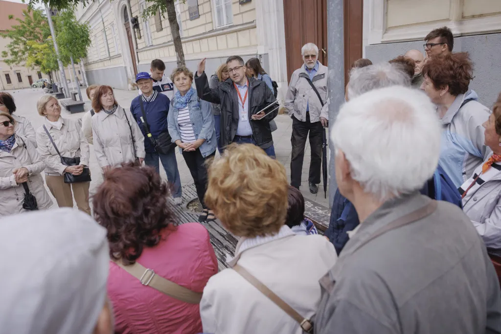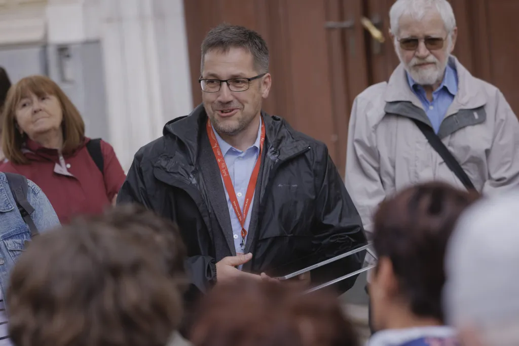 Zord idő és szürke esőfelhők kísérték a május 4-én megtartott tematikus sétát. A szüntelenül szemerkélő eső sem tudta azonban kedvét szegni a közel 65 résztvevőnek, akik a Hurban téren, az egykori Vármegyeház előtt várakoztak. Innen indította meg a sétát Korpás Árpád, Jókai Mór pozsonyi tartózkodásainak nyomát követve.
