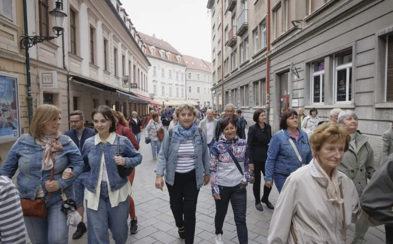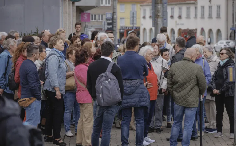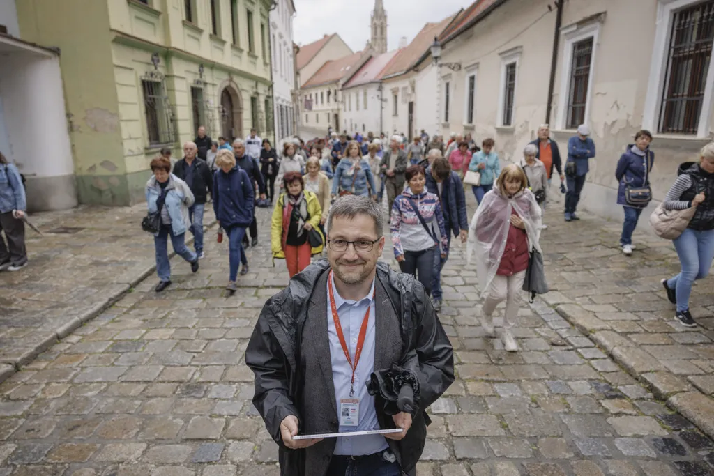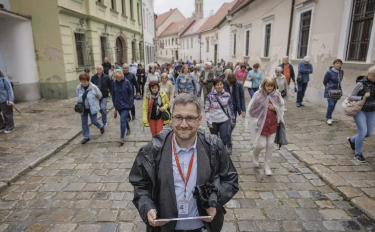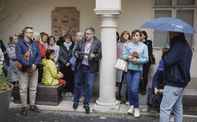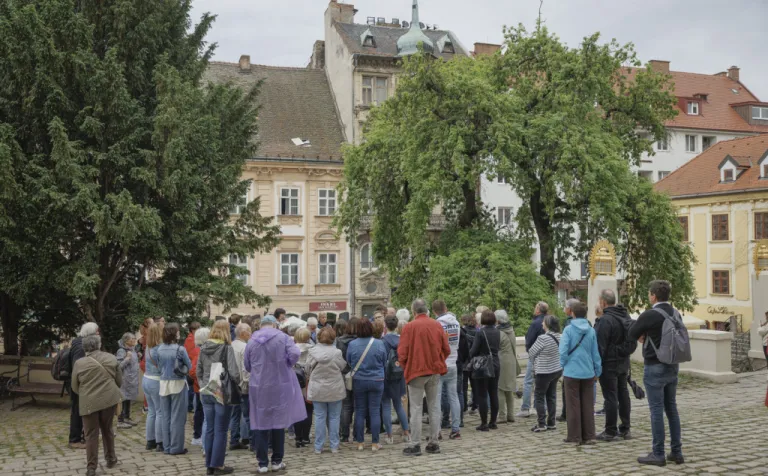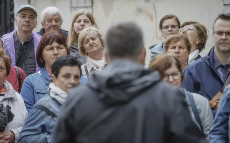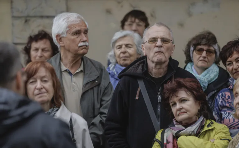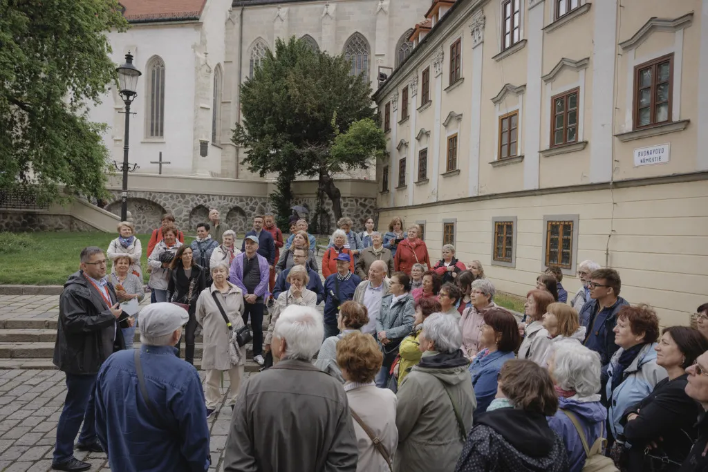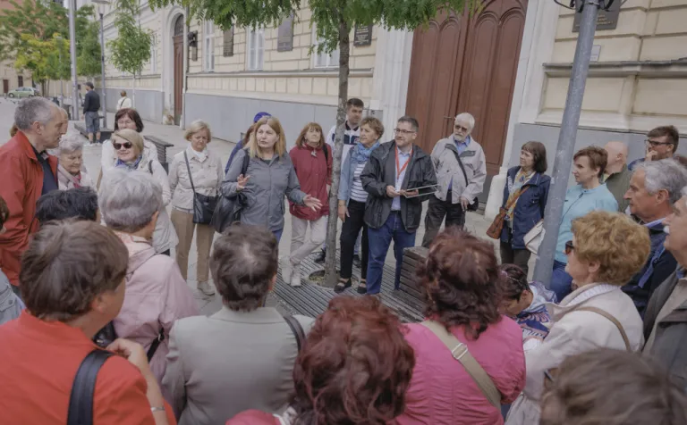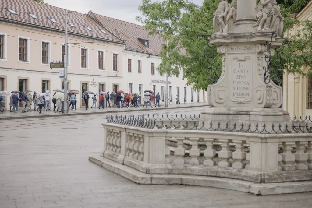 Zord idő és szürke esőfelhők kísérték a május 4-én megtartott tematikus sétát. A szüntelenül szemerkélő eső sem tudta azonban kedvét szegni a közel 65 résztvevőnek, akik a Hurban téren, az egykori Vármegyeház előtt várakoztak. Innen indította meg a sétát Korpás Árpád, Jókai Mór pozsonyi tartózkodásainak nyomát követve.