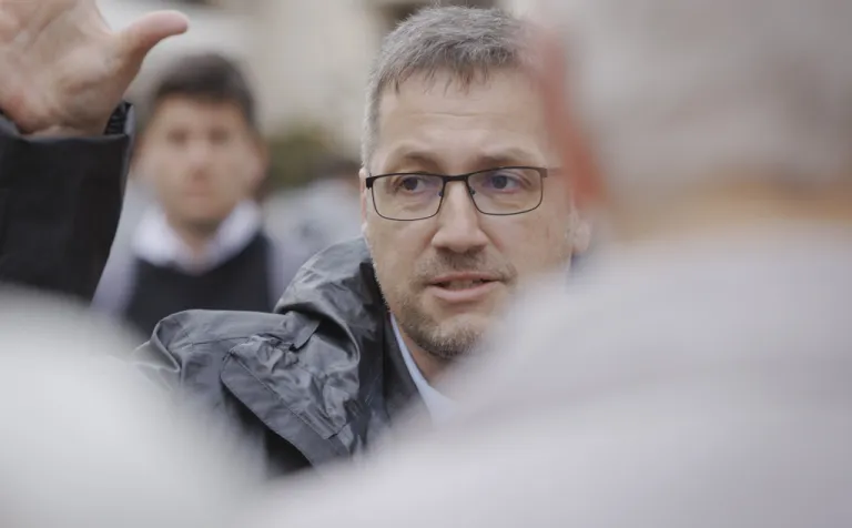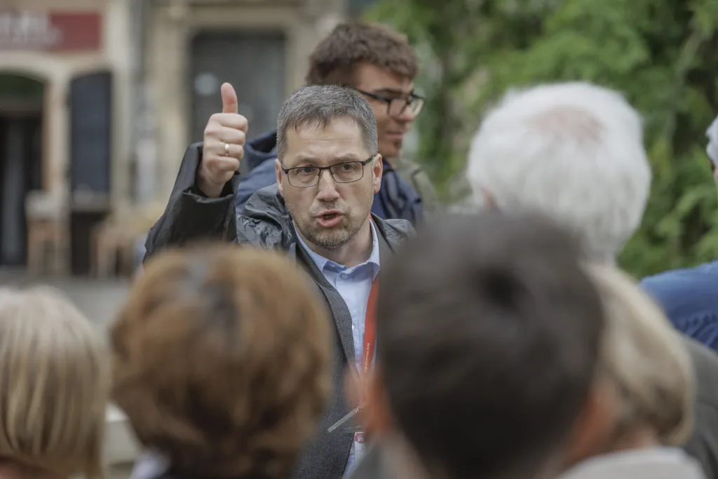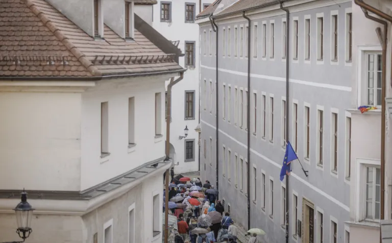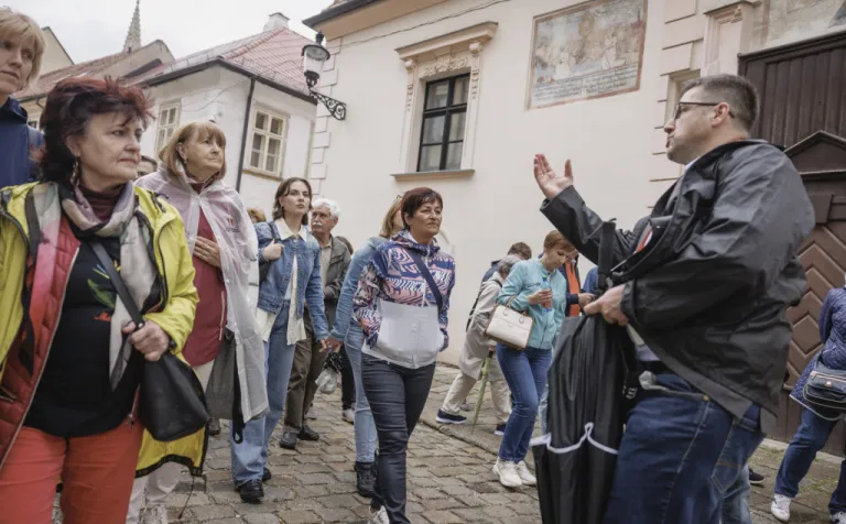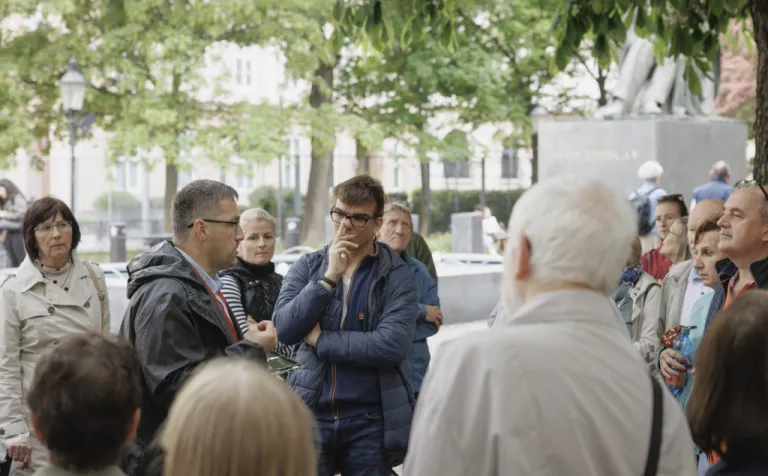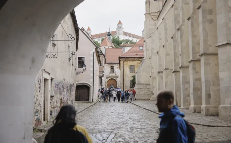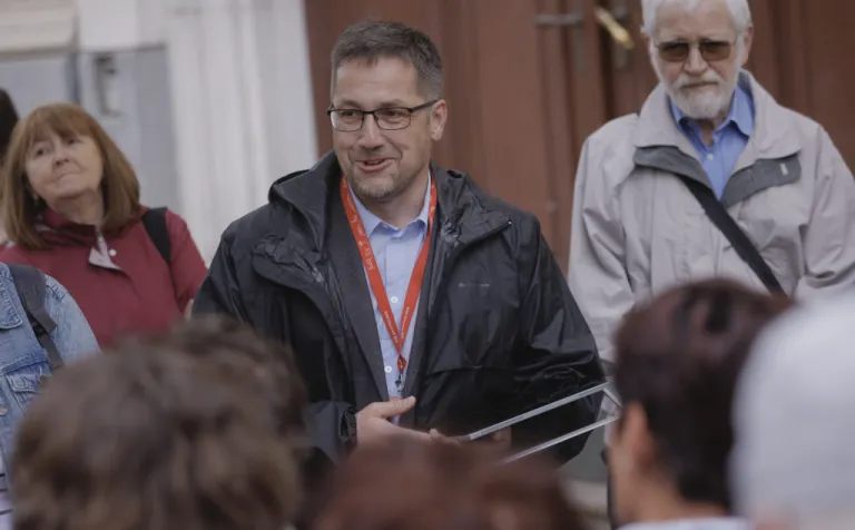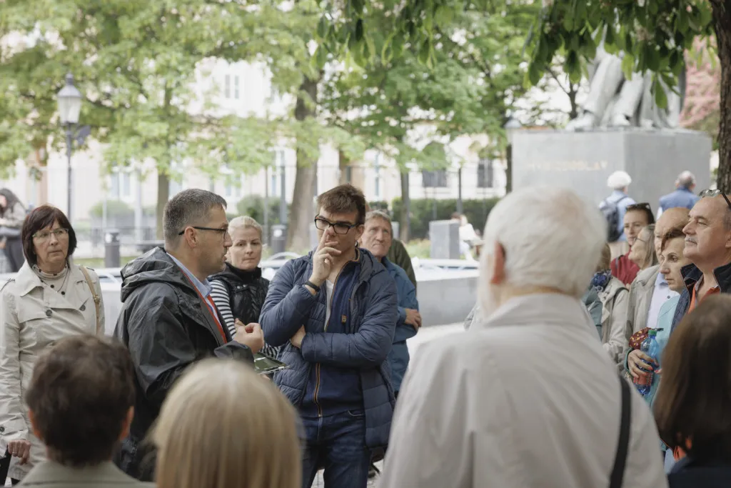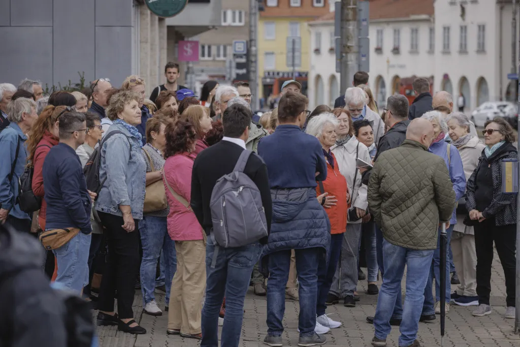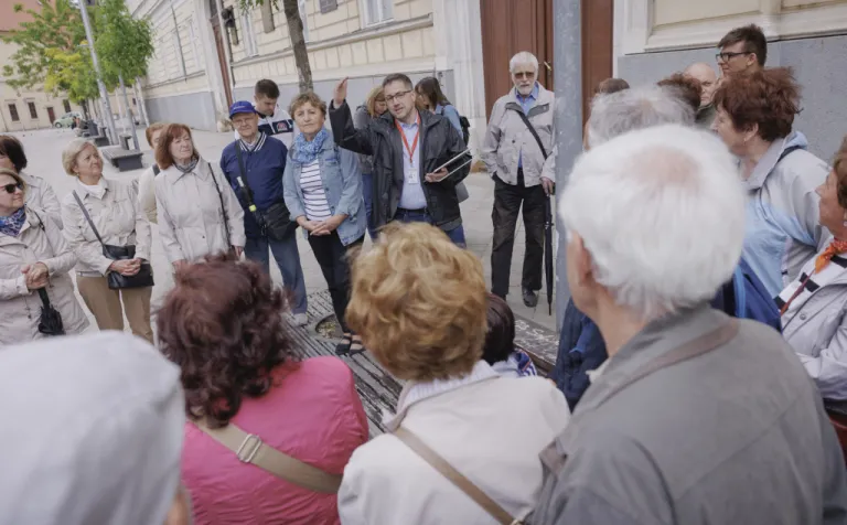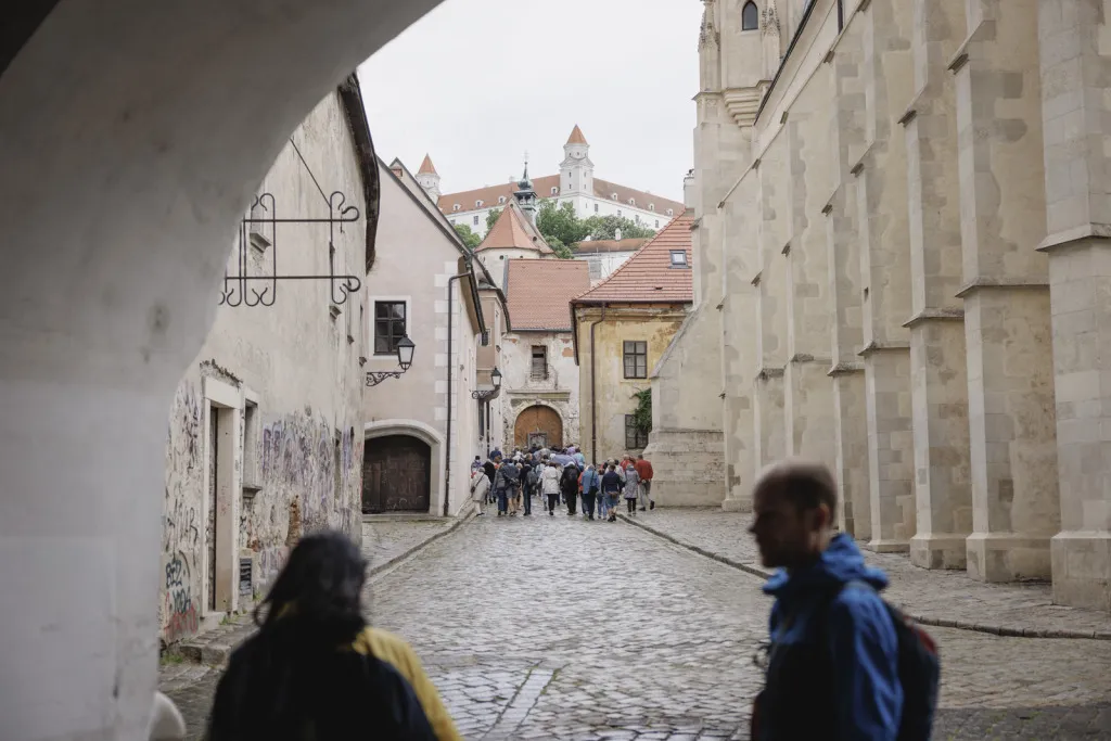 Zord idő és szürke esőfelhők kísérték a május 4-én megtartott tematikus sétát. A szüntelenül szemerkélő eső sem tudta azonban kedvét szegni a közel 65 résztvevőnek, akik a Hurban téren, az egykori Vármegyeház előtt várakoztak. Innen indította meg a sétát Korpás Árpád, Jókai Mór pozsonyi tartózkodásainak nyomát követve.