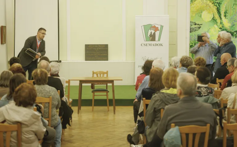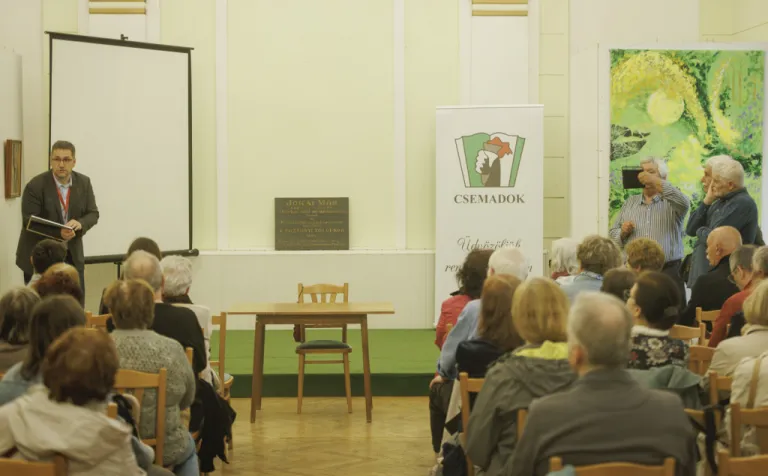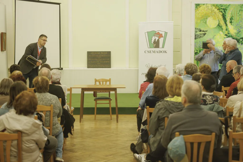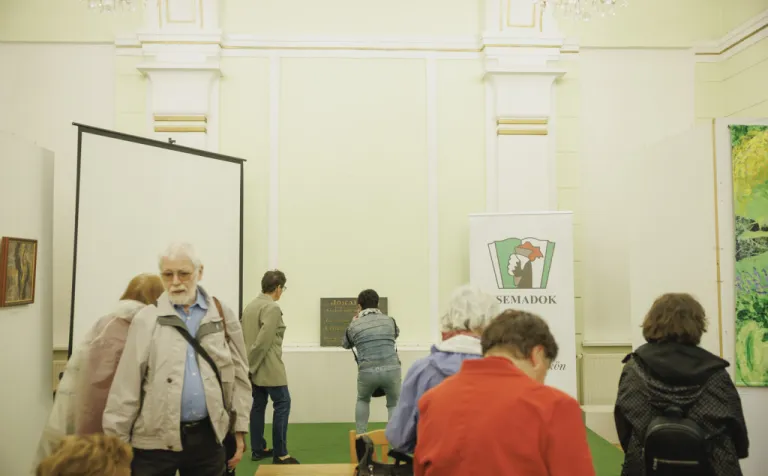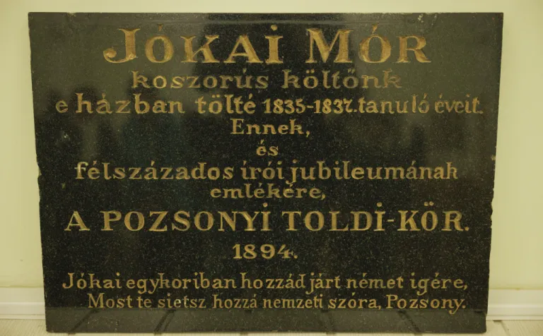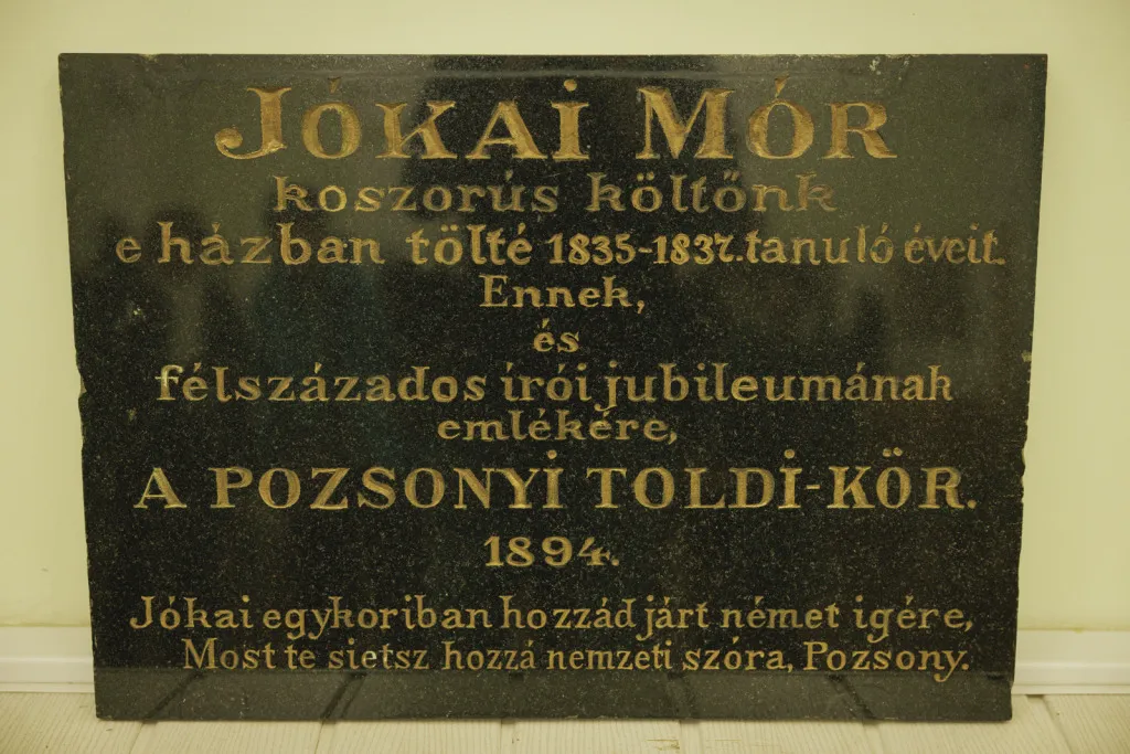 Idegenvezetőnk mindemellett arra is kitért, miként emlékezett meg Jókairól nemcsak a dualizmus kori Pozsony, de a két világháború között itt élő csehszlovákiai magyarság is. Ennek kapcsán egy meglepetés is várta az érdeklődőket: a városnéző séta utolsó állomásaként a Csemadokba látogatunk el, ahol Görföl Jenő, a szervezet országos titkára jóvoltából megtekinthettük azt a Jókai-emléktáblát, amelyet a Toldy-kör kezdeményezésére a valamikori Szél utca egyik épületén helyeztek el. Az emléktábla sokáig egy pincében porosodott, most azonban a Csemadok pozsonyi székházában őrzik.