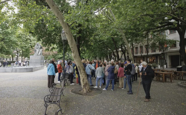 Meglátogattuk a hajdani Szél utca megmaradt részét, amelynek macskaköveit akkor rótta az ifjú Jókai, mikor cseregyerekként a városban tanulta a német nyelvet. Egyebek között megtudhattuk még azt is, miként írt Pozsonyról a műveiben, merre időzött az országgyűlési ifjakkal, s hol lehetett látni őt később, már befutott íróként. Korpás Árpád a gondosan megválogatott helyszínek mellett színes anekdotákkal is kiegészítette tartalmas sétáját. A résztvevők különösen kedvelték a Sétatéren, a Carlton szálloda előtt mesélt történetet, mely szerint a már idős Jókai – főként női – rajongói tömegével várták a szerzőt, hogy végre megpillanthassák második feleségét, Nagy Bellát.