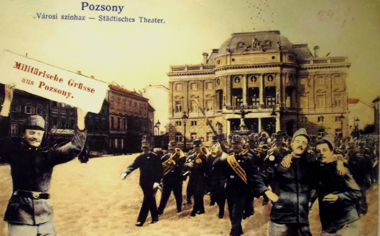 A Steiner utcán (a mai Kereszt utca – Krížna) az elpusztított házak homlokzata mögül egy ma is álló épület kandikál ki – a Ludwig-malom. A Nagyszombati vámon (Trnavské mýto) működő Központi Piacon a különféle lóerőket hasonlíthatjuk össze, nem messze innen, a mai Récsei utcán (Račianska) zajló lakásépítés háttere előtt egy fehérneműt teregető asszony hétköznapjába pillanthatunk be.