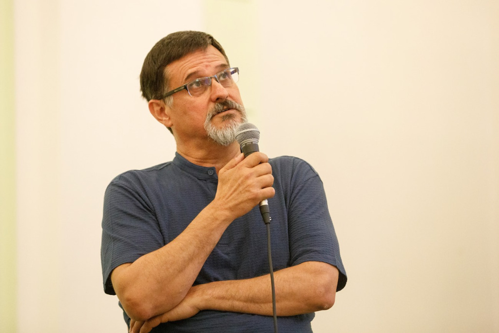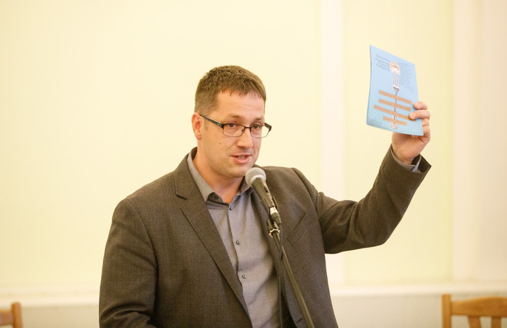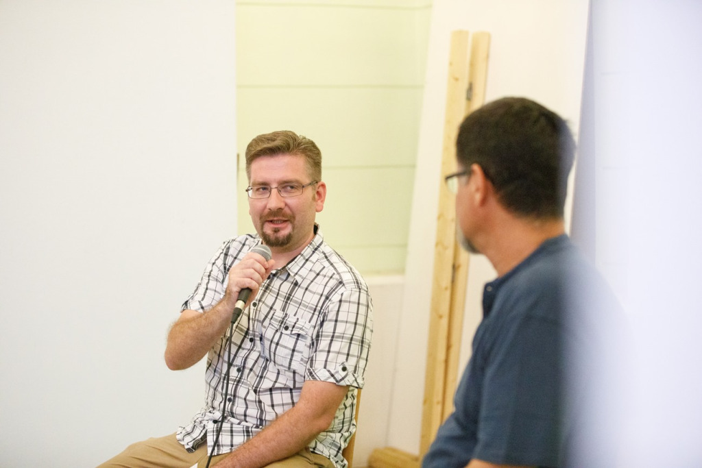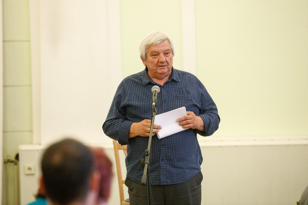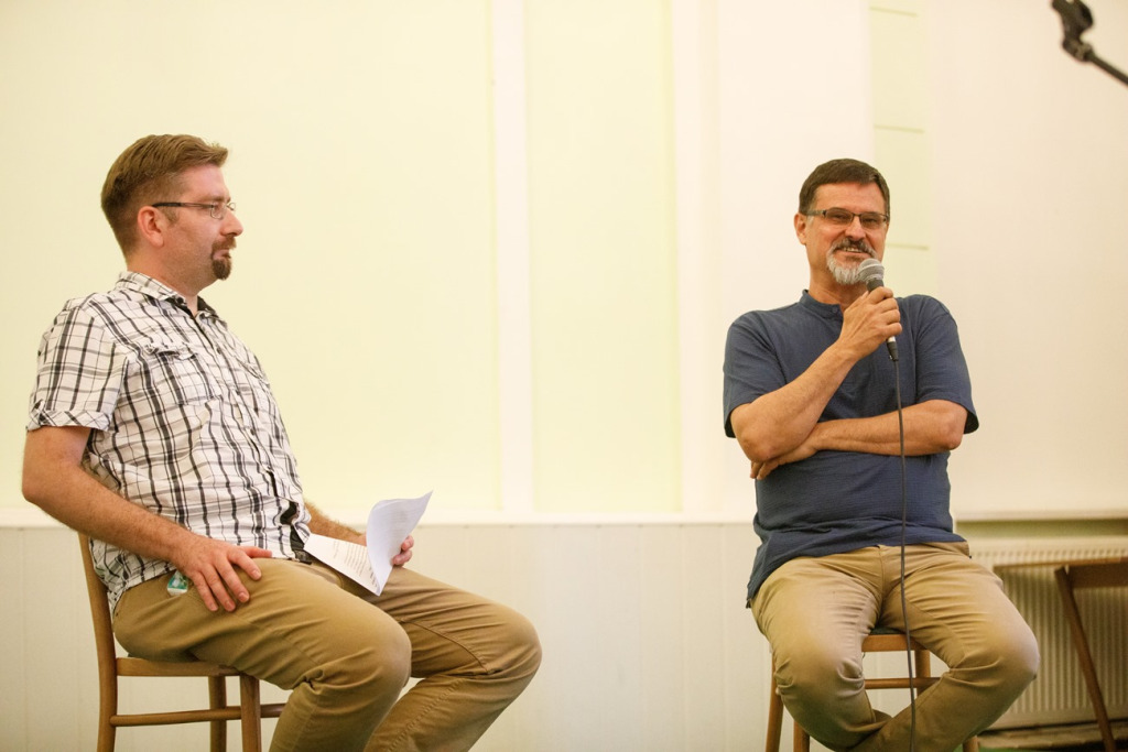 Ezután Korpás Árpád Forgács Pétert, a Fadrusz című Pozsonyi mese szerzőjét szólította színpadra. A kötetről Kacsinecz Krisztián publicista kérdezte az írót.