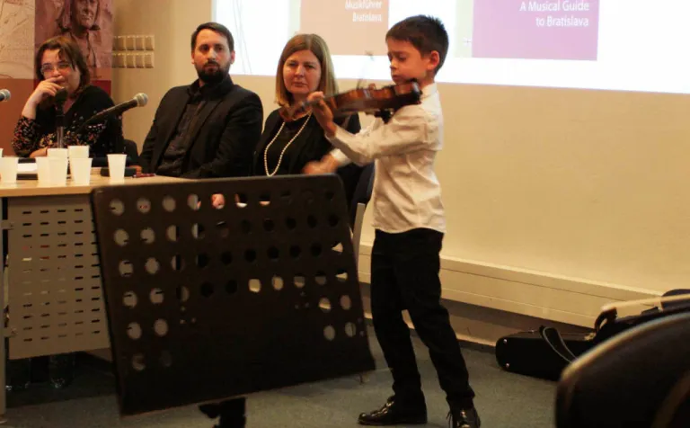 Hogy is volt, amikor a kis Wolfgang Amadeus Mozart 1762-ben Pozsonyban járt? Sok történelmi tényre nem támaszkodhatunk. Csupán Leopold Mozart levelei állnak rendelkezésünkre, amelyekben szót ejt a család pozsonyi tartózkodásáról. Arról azonban sajnos nem, hogy koncertezett-e egyáltalán a fia a városban. Bizonyosan csak annyit tudunk, hogy mettől meddig voltak Pozsonyban Mozarték, hogy vásároltak itt egy hintót, hogy a csikorgó hidegben befagyott a Morva folyó, hogy Leopold Mozartnak megfájdult a foga... és nagyjából ez minden. Peter Janoviček író kitartóan kutatta a Mozart család pozsonyi útjáról fellelhető információkat, mielőtt rászánta volna magát a Pozsonyi Kifli Pt. gondozásában, a Pozsonyi mesék sorozatban megjelent mű megírására.