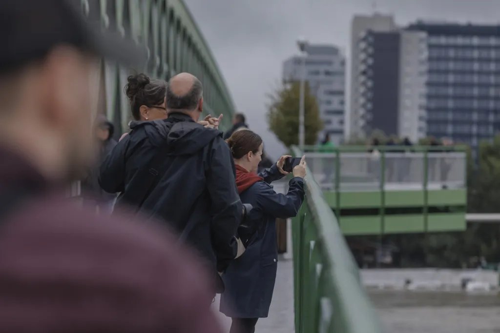 A megtépázott növényzet mellett néhány hónapnyi szünet után ismét kénytelenek vagyunk az áradó folyóra figyelni. Ereje teljében tér vissza a Duna, méghozzá egy méter magasabban, mint a nyári árhullám idején. A tetőzés 950 cm közelében várható. A 930 cm körüli aktuális állapotról (2024. szeptember 16., hétfő 14:00) készült fotót meghívónak szánjuk a természet e lélegzetelállító előadására, amely remélhetőleg nem okoz komolyabb károkat.