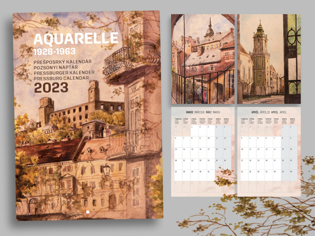 A jövő évi naptárt a régi Pozsonyt ábrázoló gyönyörű akvarellekből állítottuk össze, amelyek a város egyik kiemelkedő népszerűsítője, Lehel Zsolt idegenvezető és oktató ajándékaként kerültek birtokunkba.