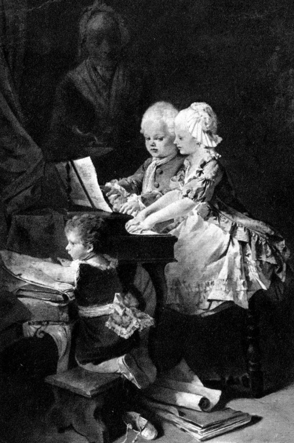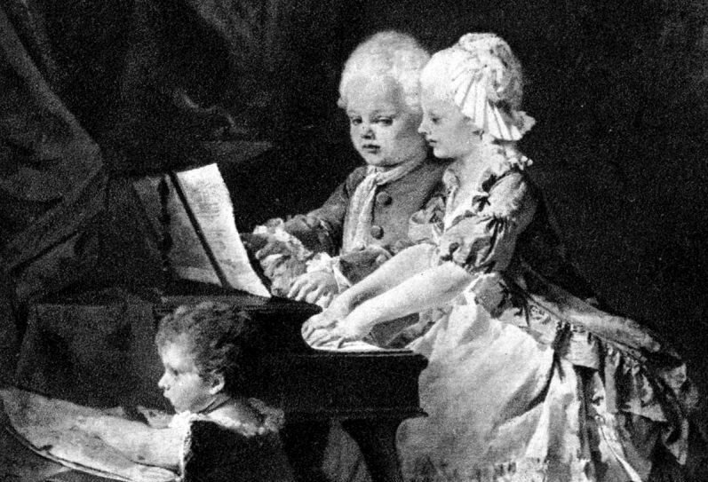 Motívum egy régi képeslapról – a Mozart testvérek, Wolferl és Nannerl (forrás: Peter Janoviček gyűjteménye)