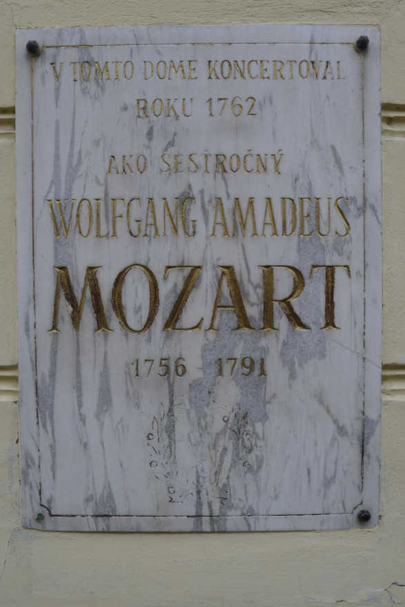 Emléktábla a pozsonyi Pálffy-palotán. Azonban nincs rá bizonyíték, hogy Mozart éppen itt adott volna koncertet (fotó: Robert Hofrichter)