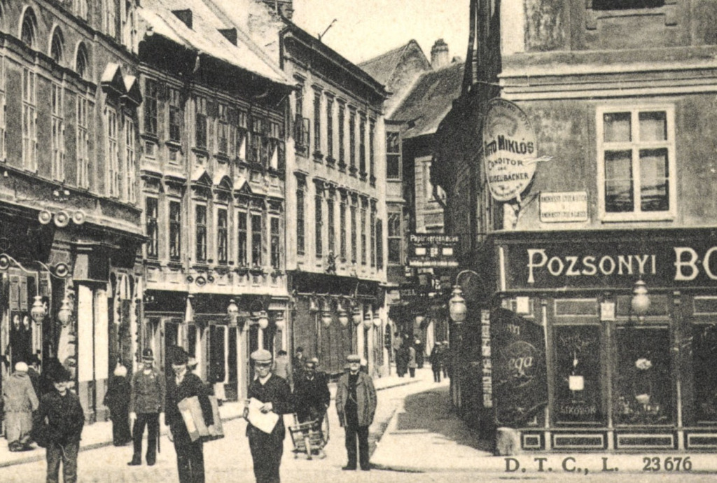 Die Wege von Touristen und Bachelors sind auch in Pressburg berechenbar. Ich kann ihnen leicht ausweichen. Am Ende der Herrengasse oder Lange Gasse (Panská), der Pressburger Meile des Adels mit den in der mariatheresianischen Zeit erbauten Palais der Pálffy, Esterházy, Csáky und Keglevich (Keglević), sind sie weg. Das Stimmenwirrwarr weicht einer anderen, noch vertrauteren Geräuschkulisse, dem Lärm des Verkehrs, der von der Lände und der architektonisch beeindruckenden SNP-Brücke heraufzieht auf den Domplatz (Rudnayovo námestie) und den Fischplatz (Rybné námestie), wo einst die große Pressburger Synagoge stand. Sie wurde nicht in den dunklen Jahren des slowakischen Faschismus niedergerissen, sondern erst im Zuge der Stadtregulierung in den späteren Jahren des Kommunismus. Die Wunde, die damals der Stadt zugefügt wurde, klafft noch immer und sie schmerzt mich jedes Mal, wenn ich aus der Inneren Stadt auf den Schlossberg spaziere. Seit einigen Jahren erinnert eine interessante Ausstellung am Platz an die Synagoge und ihre Geschichte. Nicht fehlen darf dabei das auf dem Platz 1918 aufgenommene Foto, dass das letzte ungarische Königspaar Karl und Zita und den sie segnenden Oberrabbiner Samuel Funk zeigt.