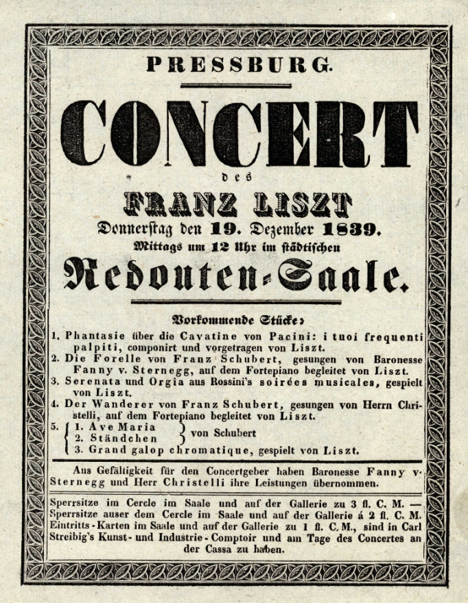 Konzert von Franz Liszt in Pressburg, am 19. Dezember 1839