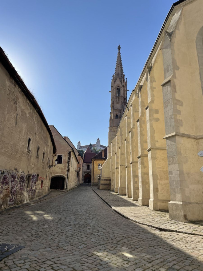 Der Kaffee am Domplatz ist ausgetrunken und schön langsam wird’s Zeit für mein Lieblingsviertel in der Altstadt, die Pfarrgasse (Farská), die Probstgasse (auch Pázmánygasse, Prepoštská), die Klarissengasse (Klariská) und die Kapitelgasse (Kapitulská).