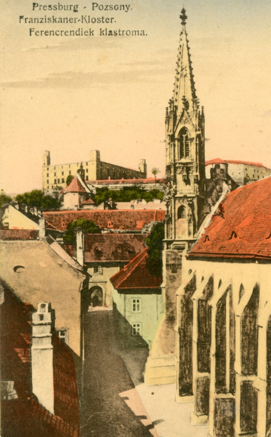 Das Pressburger Kirchenschiff erinnert mich an die Hermannstädter Kirche und die Schwarze Kirche von Kronstadt (Brașov-Brasso), beide in Siebenbürgen und damit auch in Altungarn gelegen. Ob daher meine Assoziation stammt? Wahrscheinlich nicht. Eher verbindet die Kirchen die Tradition der deutschen Gotik, schließlich waren Hermannstadt, Kronstadt und Pressburg damals hauptsächlich deutsch. Und jetzt stehen die Kirchen in Rumänien und der Slowakei. So ist das bei uns in Mitteleuropa. Auf den Turm, Sie wissen, der mit der goldenen Krone, muss ich noch einmal zurückkommen: Die Pressburger bauten ihn einst, wahrscheinlich klugerweise, in ihre Stadtbefestigung ein. Er lag damit streng genommen außerhalb der Stadt, was die Wiener später spotten ließ, der Pressburger Pfarrer müsse die Stadt verlassen, um sich für die Messe anzuziehen.