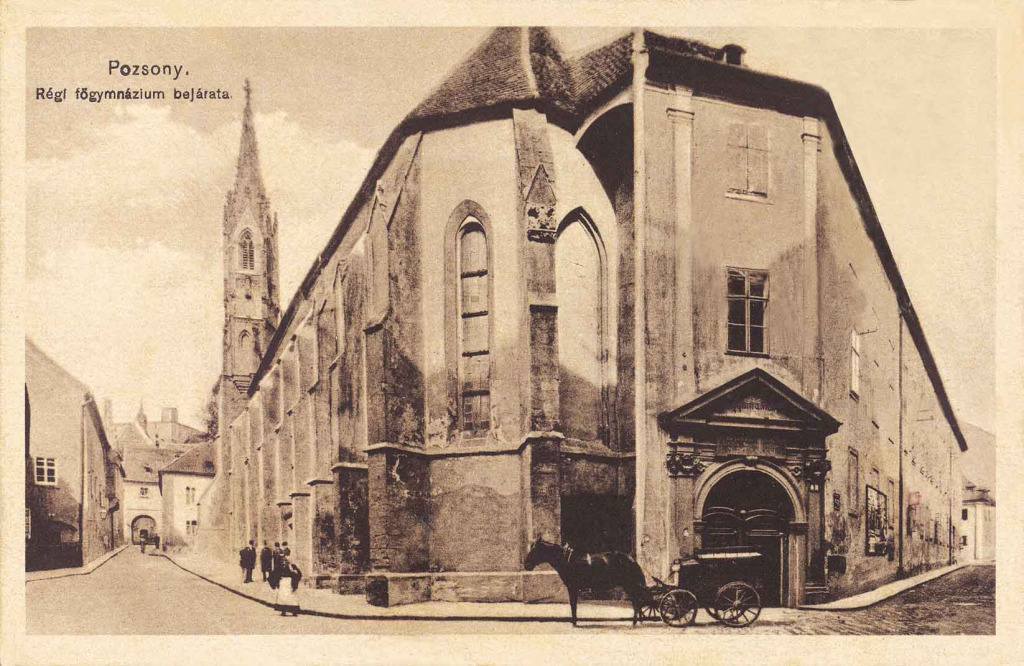 Durch den Schwibbogen (Podjazd) beim Haus der ungarischen Kammer, der heutigen Unibibliothek, komme ich auf meinem virtuellen Spaziergang in einen anderen, nicht ganz so vornehmen, dafür sehr pittoresken Winkel der Stadt. Es ist die Klarissergasse. Die Klarissinnen sind schon lang weggezogen, die Kirche ist keine Kirche und das Ende der Gasse bei der Breiten Stiege kein Sauwinkel mehr, in dem die Pressburger ihren Dreck entsorgten. Ich mag die Gasse und das schmale gotische Kirchenschiff mit dem eleganten Turm, der allerdings nur neogotisch ist.
