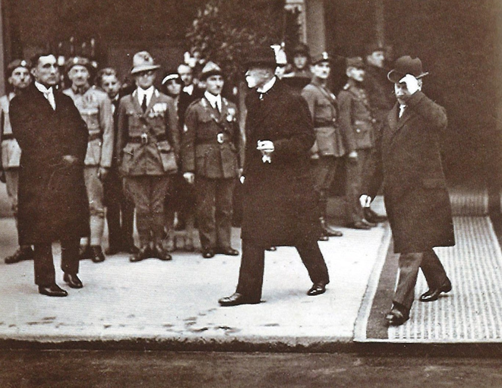 Präsident Masaryk verlässt das Hotel und Max Prüger begleitet ihn. Quelle: Archiv der Familie Lippert