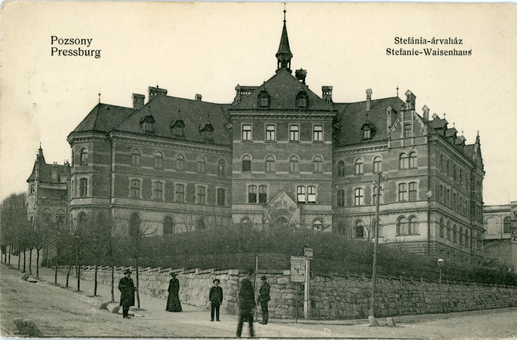 Harmadjára egy másfajta képzőművészeti alkotásról essék szó. Áll Pozsonynak egy kies pontján, a Mély út aljánál levő magaslaton, egy szemet gyönyörködtető épület, amelyről látszik, hogy szebb időkben és kifinomultabb ízléssel tervezték, mint korunk modernnek mondott, de mindeképpen más ízlést tükröző, csupa üveg és csupa acél építményeit. Noha ma már a környezete erősen megváltozott, amikor 1900-ban elkészült, az átadása idején szintén modernnek számító Mária Oltalma Árvaház impozáns épülete már messziről látható volt, s a pozsonyiak kedvelt kirándulóhelyéhez, a Hegyi ligethez közeledve egy neoromán, neogótikus és északi reneszánsz stílusjegyeket ötvöző, historizáló háromemeletes épület tárult az érkező szeme elé. Az első emelettől felfelé vörösesbarna klinkertégla borítású homlokzat mögött 120 gyermek befogadására alkalmas lakóhelyiségek, osztálytermek és egy kápolna kapott helyet. Ez az épület a Brunswick Teréz grófnő által kezdeményezett kisdedóvó egyesületben 1830-ban indítványozott árvaház második otthona volt. Az elsőt a kolerajárványban árván maradt gyermekek számára az egykori, ma már nem létező Vallon utcában építette fel Feigler Ignác építőmester a járvány idején királyi biztosként működő gróf Zichy Ferenc hathatós támogatásával. Az intézményt 1885-től kezdték Stefánia árvaháznak nevezni az akkori patrónusáról, Stefánia belga királyi hercegnő, Habsburg–Lotaringiai Rudolf osztrák–magyar trónörökös hitveséről. A katolikus és evangélikus árvákat egyaránt befogadó intézmény jellege a század végére megváltozott, és miután a 90-es években a Paulai Szent Vince-rendi irgalmas nővérek kezelésébe került, az 1900-ban átadott, már Mária Oltalma Árvaház és Nevelőintézet néven működő intézmény katolikus jelleget nyert. A második világháború végéig működött mint árvaház és iskola, 1945-től azonban már csak iskola volt benne, eleinte hatosztályos népiskola, majd ahogy változott az iskolarendszer, 8 osztályos középiskola, 9 éves alapiskola, manapság pedig teljes szervezettségű alapiskola.