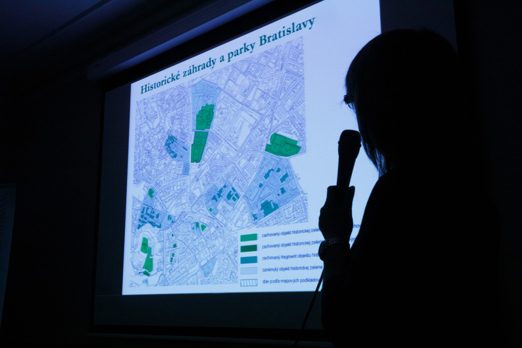Virtuális vezetőnk, Tamara Reháčková tájépítész gazdag képanyaggal avatott be bennünket a parkok és kertek történetébe. A tematikusan (szerzetesrendek, főúri paloták, magánvillák és a köz zöld területei) és kronológiailag rendezett anyag mellett a jelenlegi védelem kilátásairól is szólt. A zsúfolásig megtelt terem a legjobb motivációt jelentette számunkra a folytatáshoz – várjuk Önöket a további előadásokon!