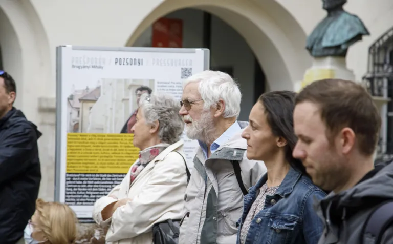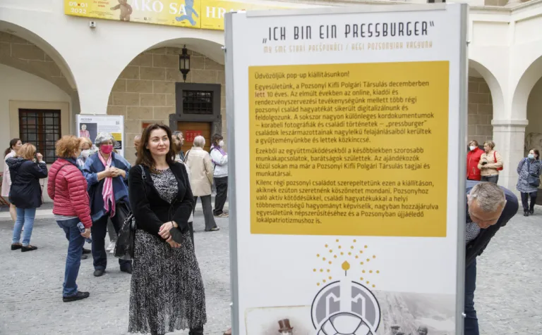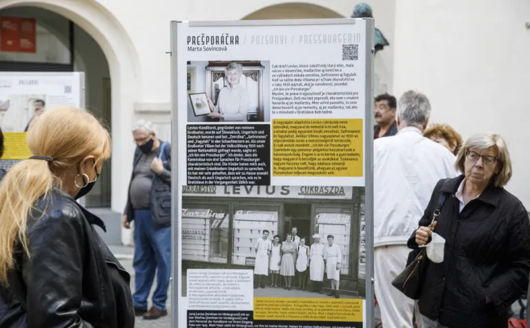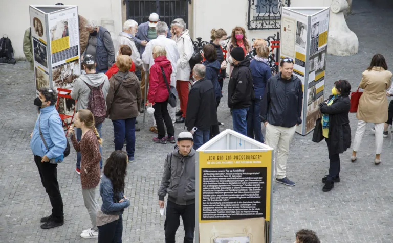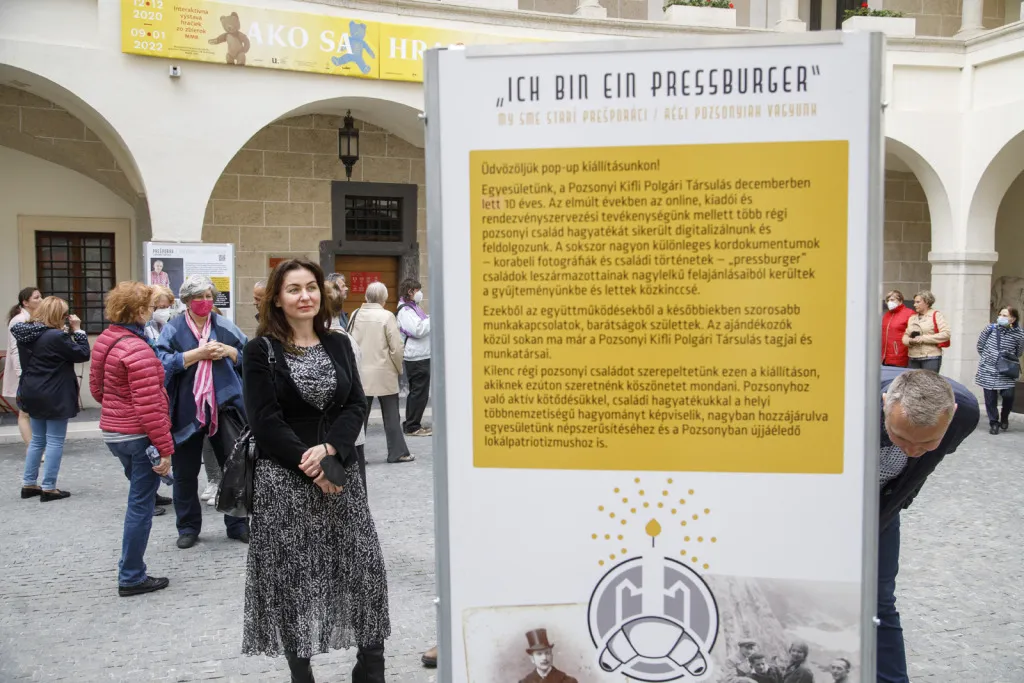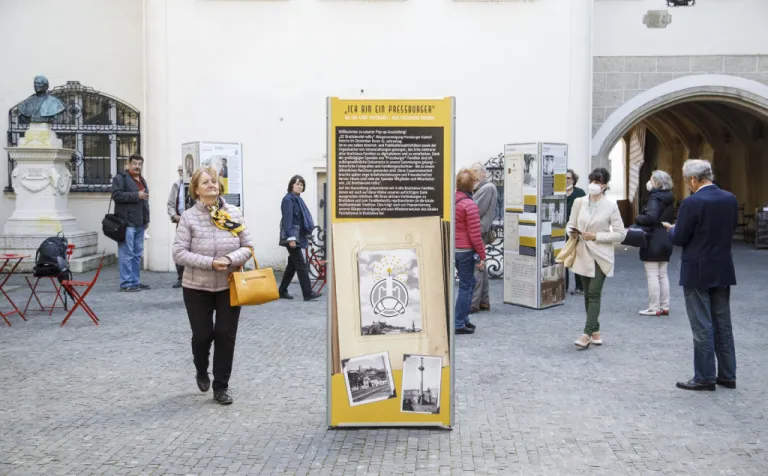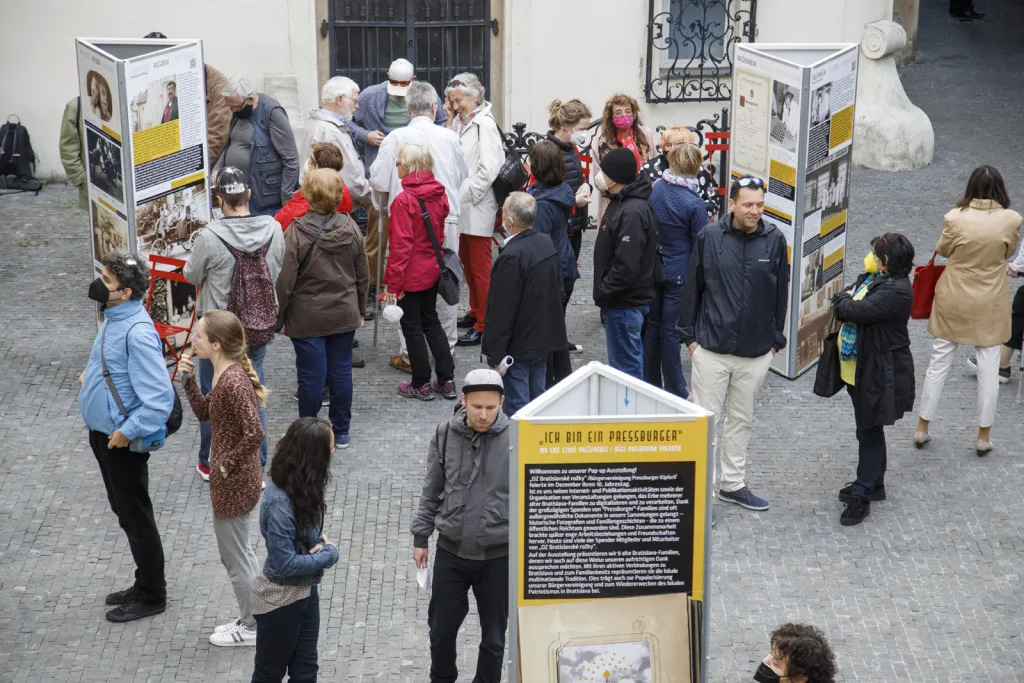 Május 30-ig tekinthető meg a Pozsonyi Kifli Polgári Társulás Ich bin ein Pressburger – Ich bin eine Pressburgerin / My sme starí Prešporáci / Régi pozsonyiak vagyunk című kültéri (pop-up) kiállítása az Óvárosháza udvarán.