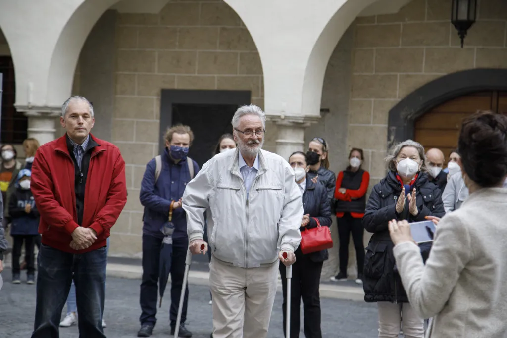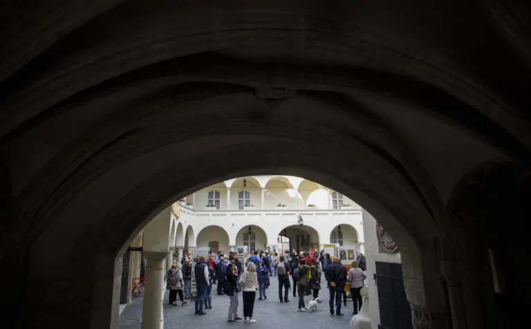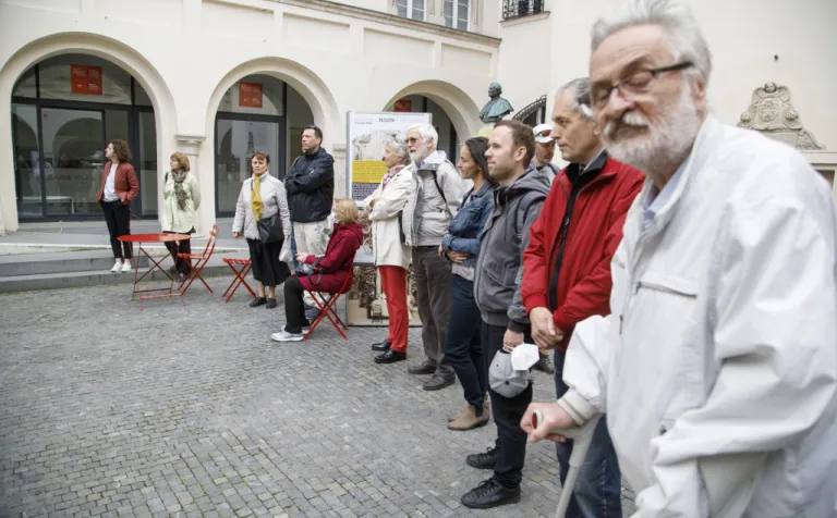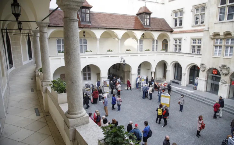 A Pozsonyi Kifli PT a kiállítást még tavaly szerette volna megrendezni, de a koronavírussal kapcsolatos járványügyi korlátozások miatt erre csak most nyílt lehetőség. A május 18-i megnyitón jó volt látni és hallani, hogy a résztvevők sokáig, kedvvel cseverésztek a patinás udvaron.