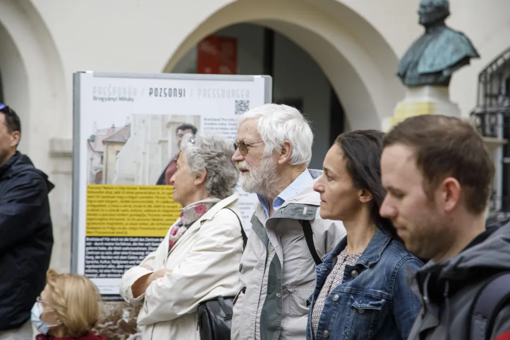 A szlovák, magyar és német nyelvű paneleken régi pozsonyi családok leszármazottai, Aich Péter, Bertha Mária, Brogyányi Mihály, Holényi Gergő, Peter Janoviček, Kálmán László, Samarjay Zoltán, Monika Schweighofer és Marta Sovincová mutatja be családja történetén keresztül a város múltját és a pozsonyiak identitását.