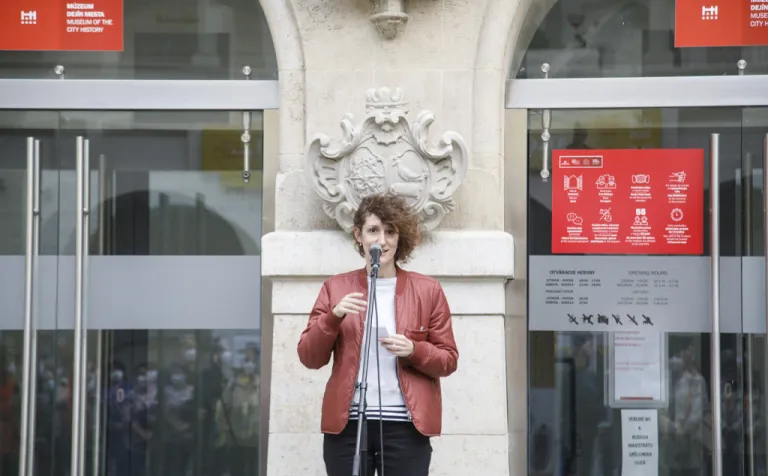 A kiállítást a Pozsonyi Városi Múzeum vezetésével megbízott Zuzana Palicová nyitotta meg. Köszöntőjében megemlítette, hogy a járványügyi korlátozások után ez az első rendezvény az Óvárosháza udvarán. Örömmel tölti el, hogy a múzeum és társulás együttműködik.