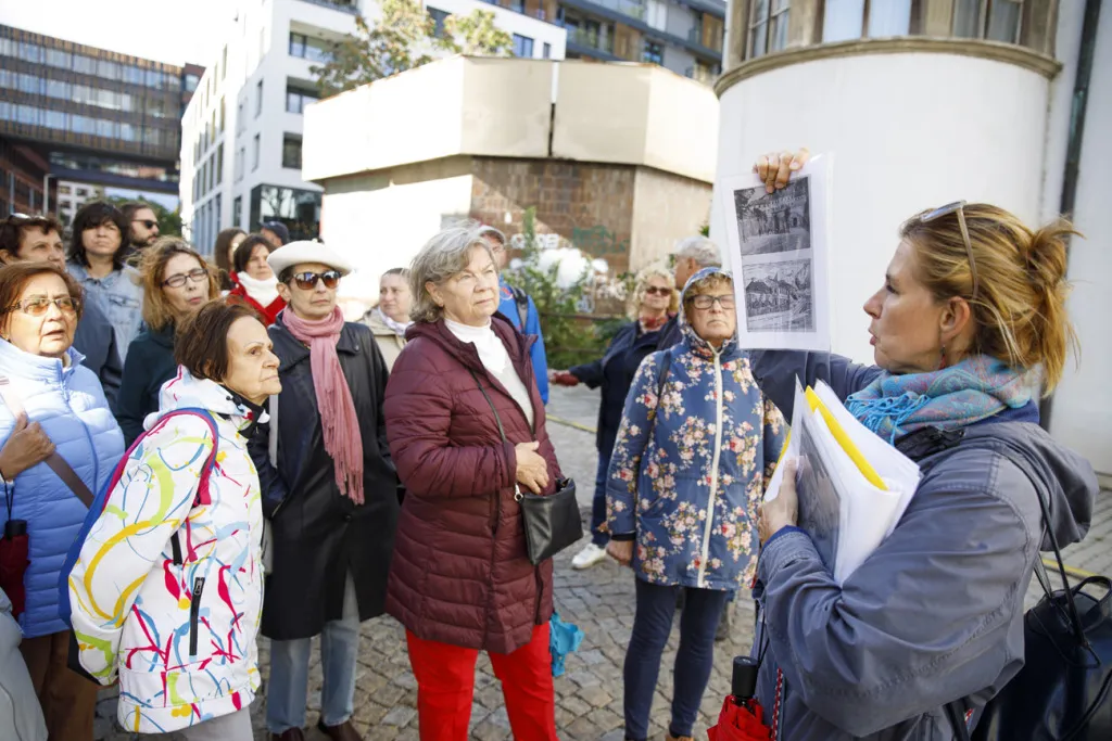 2022. szeptember 18-i, vasárnapi sétánkon a Zuckermandel utcácskái felé vettük az irányt. Bár az egykori festői váraljai településnek mára csak a torzója maradt meg, története és genius locija minden egyes kőből sugárzik. A szóválasztás szándékos, a Zuckermandel ugyanis egy egykori kőbányában, a várszikla lábánál fekszik, amelyhez éppoly szorosan kapcsolódik, mint magához a várhoz. A „Zuckermandel – a történelem és a modern város kontrasztja” elnevezésű sétán Andrea Turanská volt a vezetőnk, aki a zord idő ellenére is végigkalauzolt bennünket a városrész történetén. Köszönet illeti az avatott, tartalmas sétavezetésért. A résztvevők hálásan fogadták a választott témákat és a sok információt, amellyel a séta során gazdagodtak.
