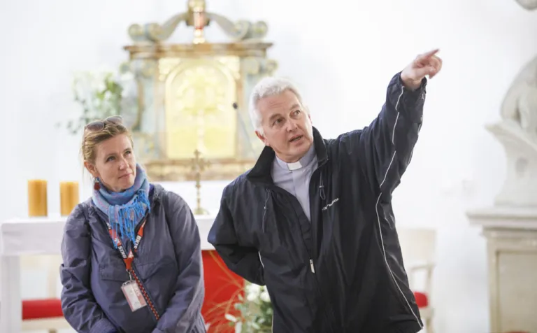 A séta végén eleredő eső minket már a váraljai Szentháromság-templom biztonságában talált. Thurzo plébános úr előzékenységének köszönhetően még a népszerű váraljai káplánhoz, Scherz Károlyhoz kötődő egykori plébánia helyiségeit is megtekinthettük. És mire az ő történetének végére értünk, még az eső is elállt...